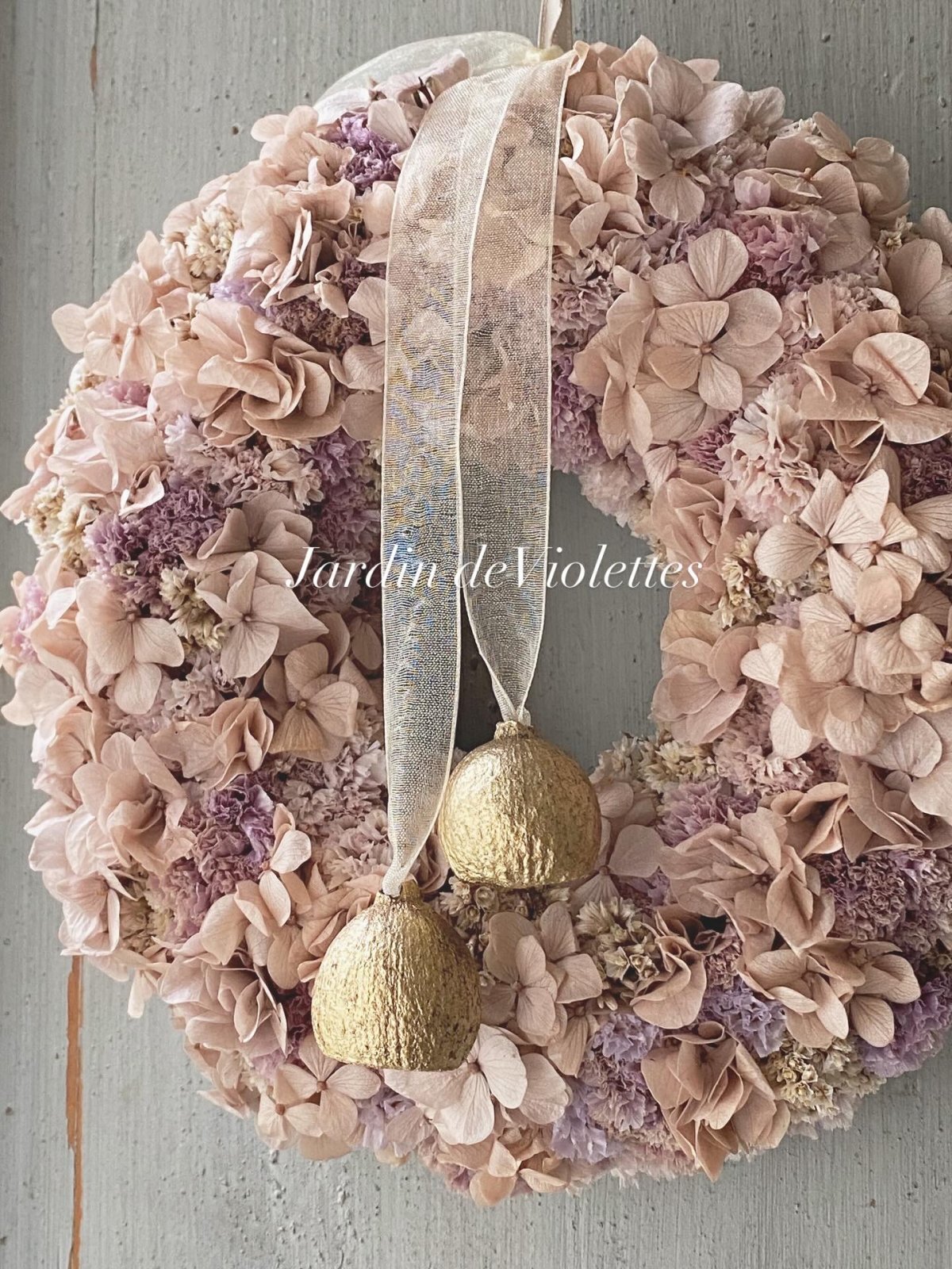 アンティークピンクの優しいリースに
