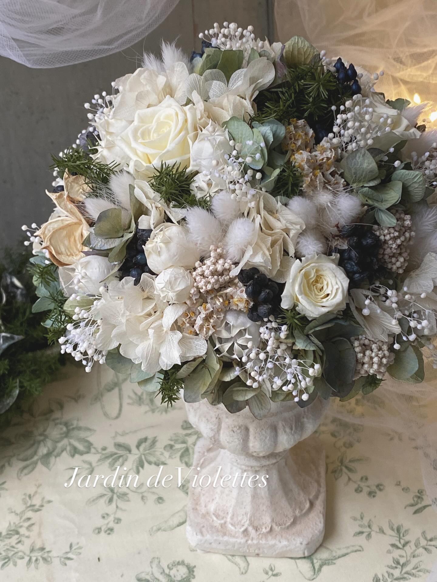 ※こちらの商品は プリザーブド、生花を自然乾燥してドライにしたもの