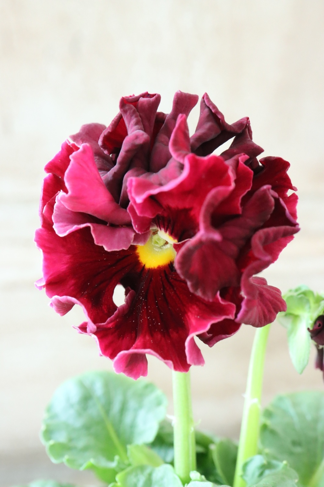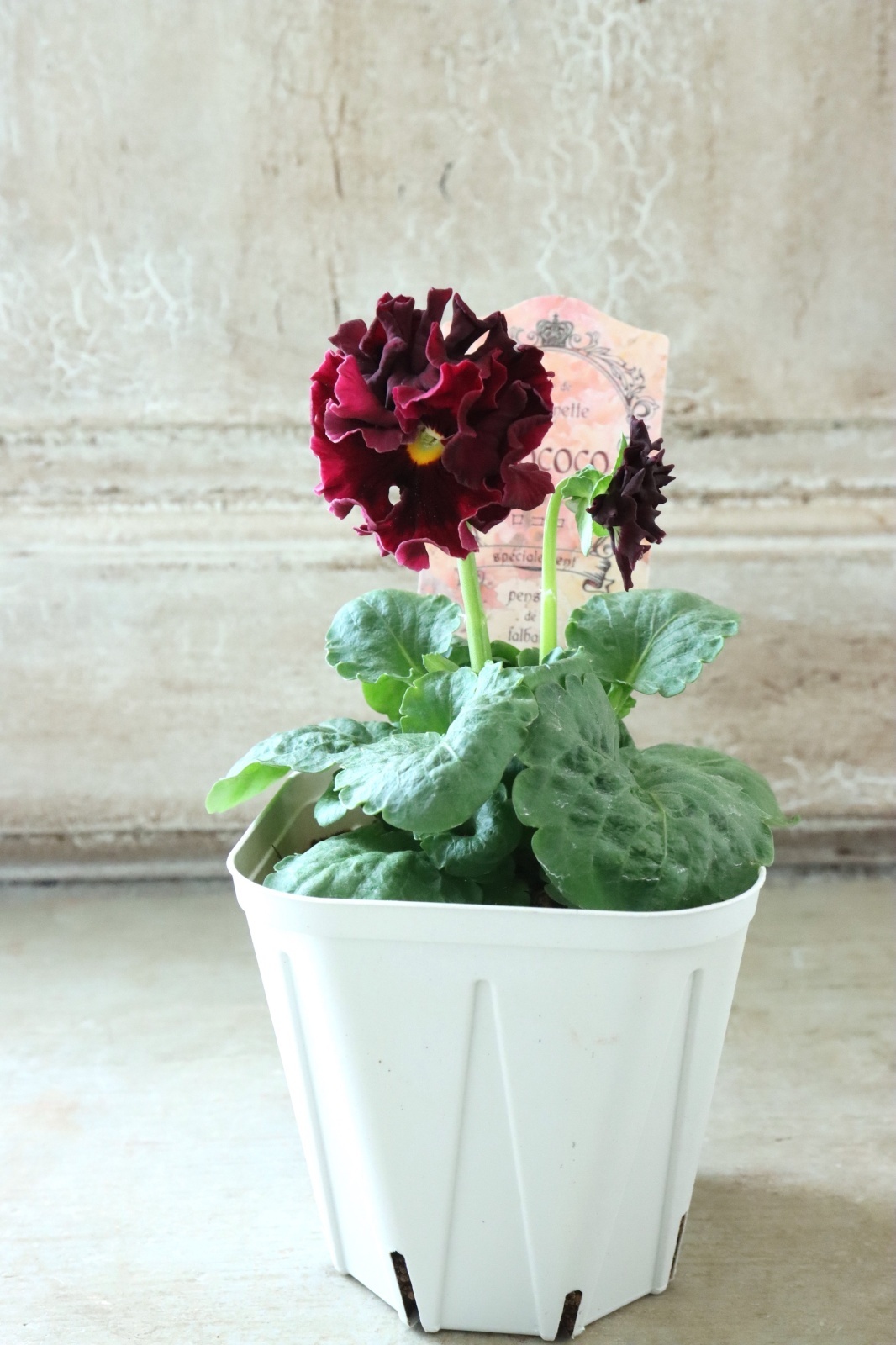 ローブ・ドゥ・アントワネットから生まれた豪華なフリル咲きのパンジーです。