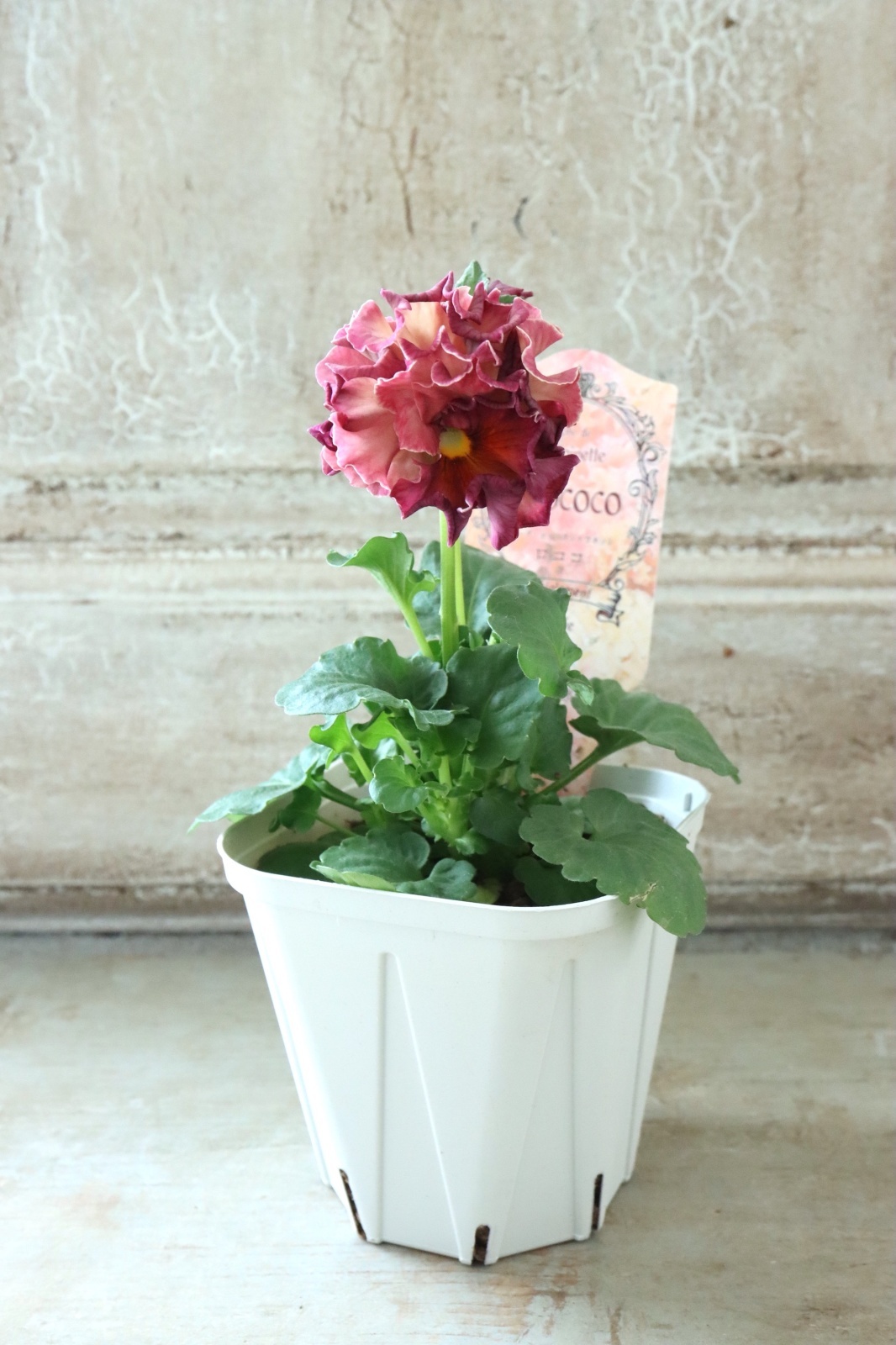 ローブ・ドゥ・アントワネットから生まれた豪華なフリル咲きのパンジーです。
