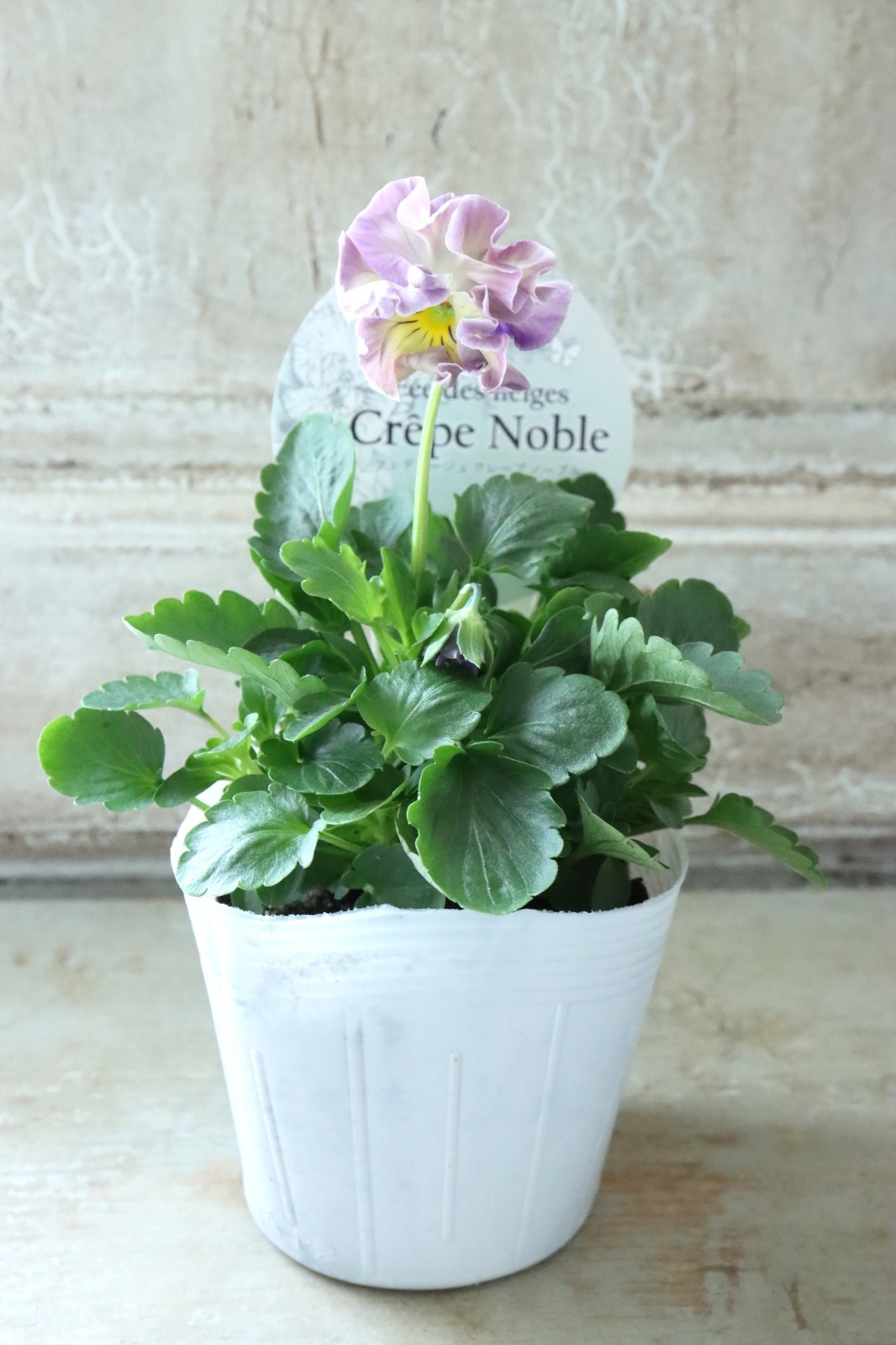 大輪で上品な花色と細かなクレープのある花弁が特徴のパンジーです!