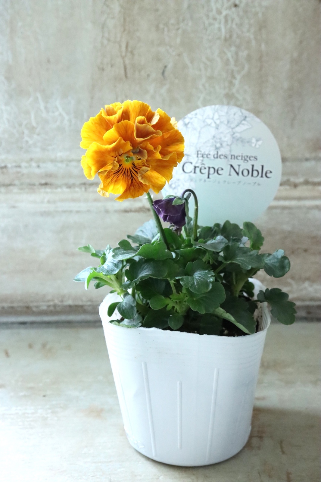 大輪で上品な花色と細かなクレープのある花弁が特徴のパンジーです!