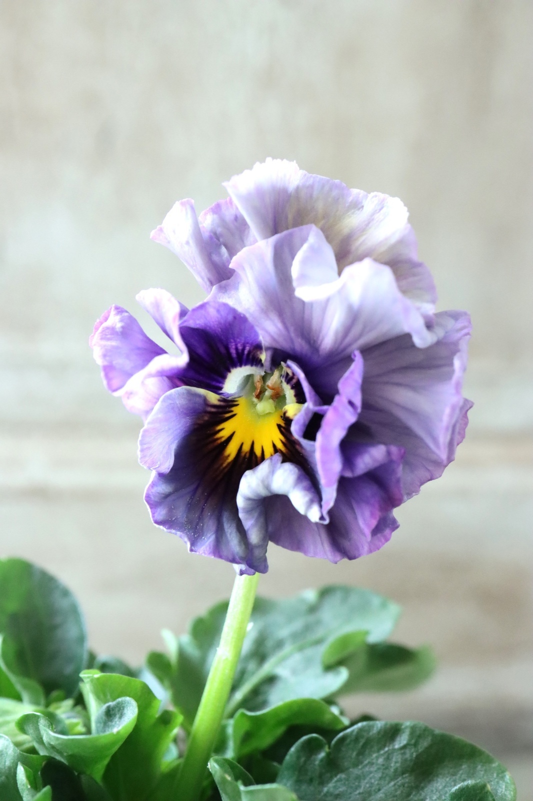 大輪で上品な花色と細かなクレープのある花弁が特徴のパンジーです!