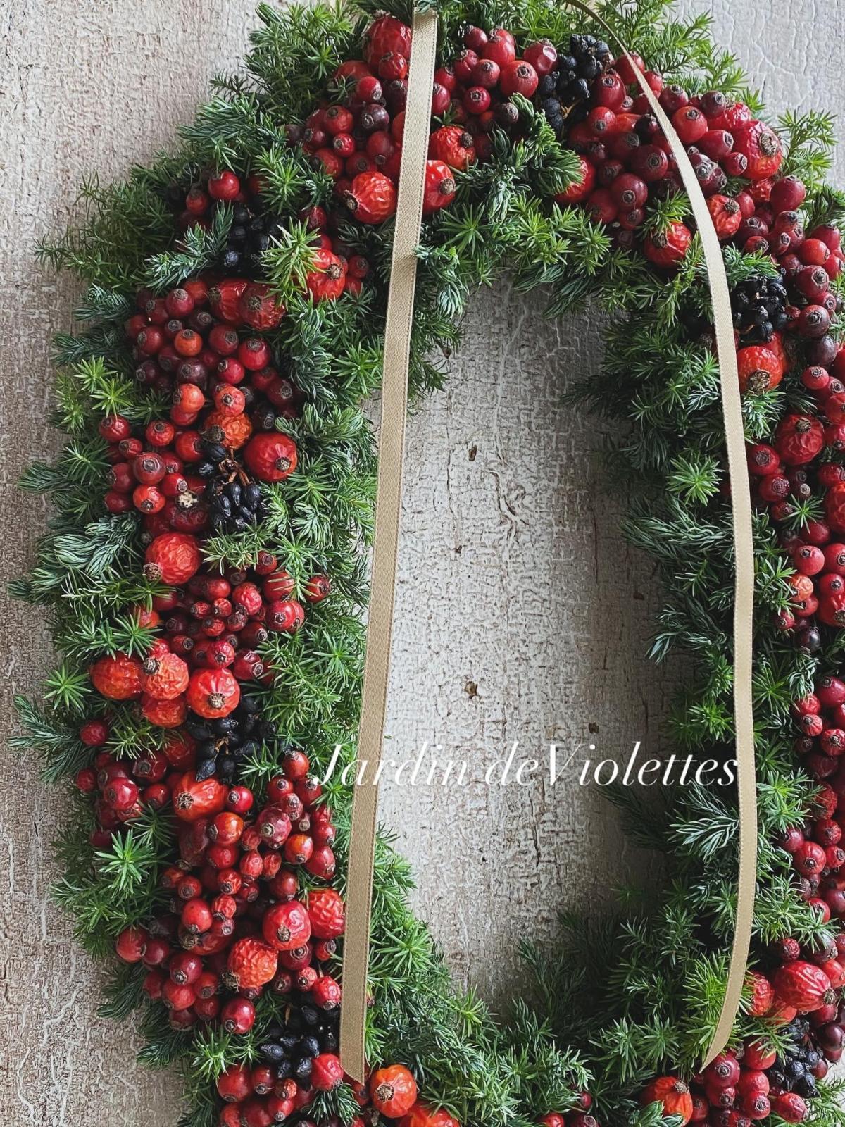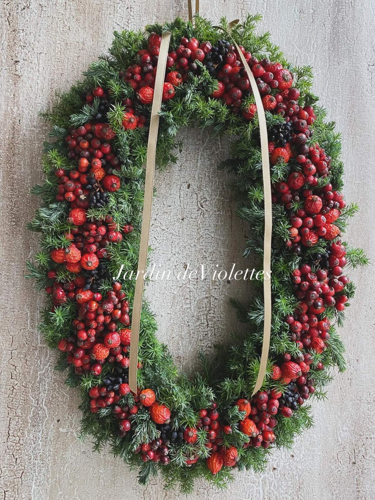 <2025'noël'>限定◇ナチュラルオーバルリース ベリーベリーノエル