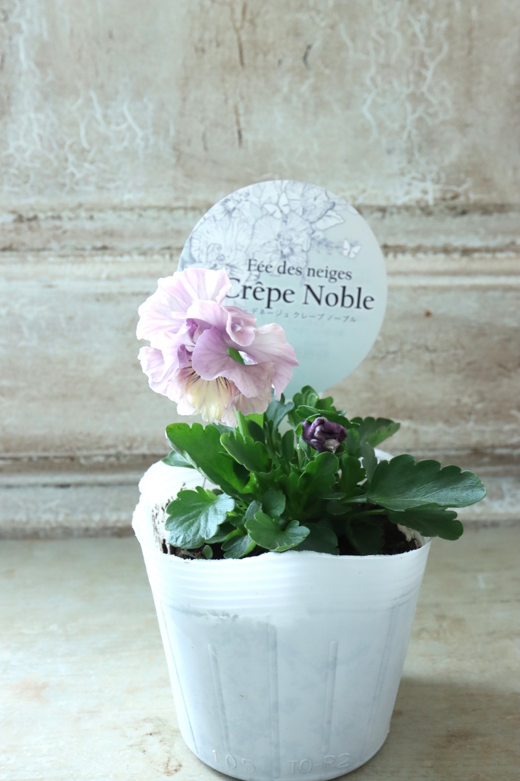 大輪で上品な花色と細かなクレープのある花弁が特徴のパンジーです!