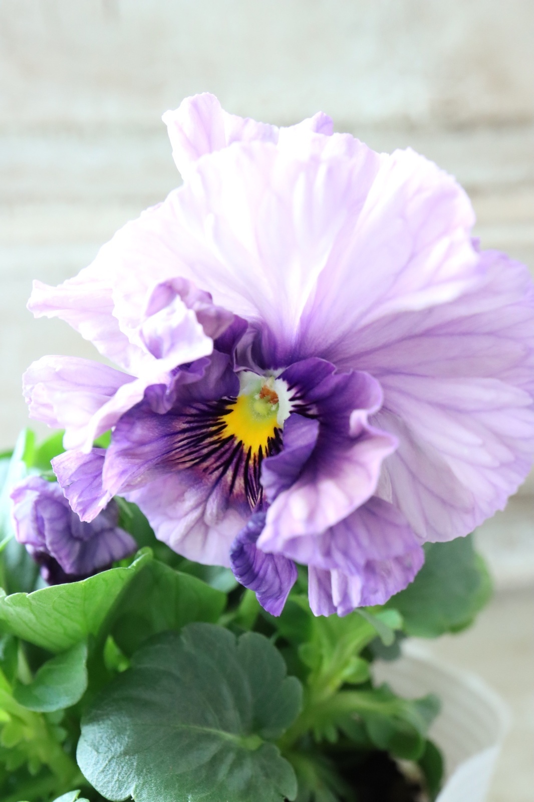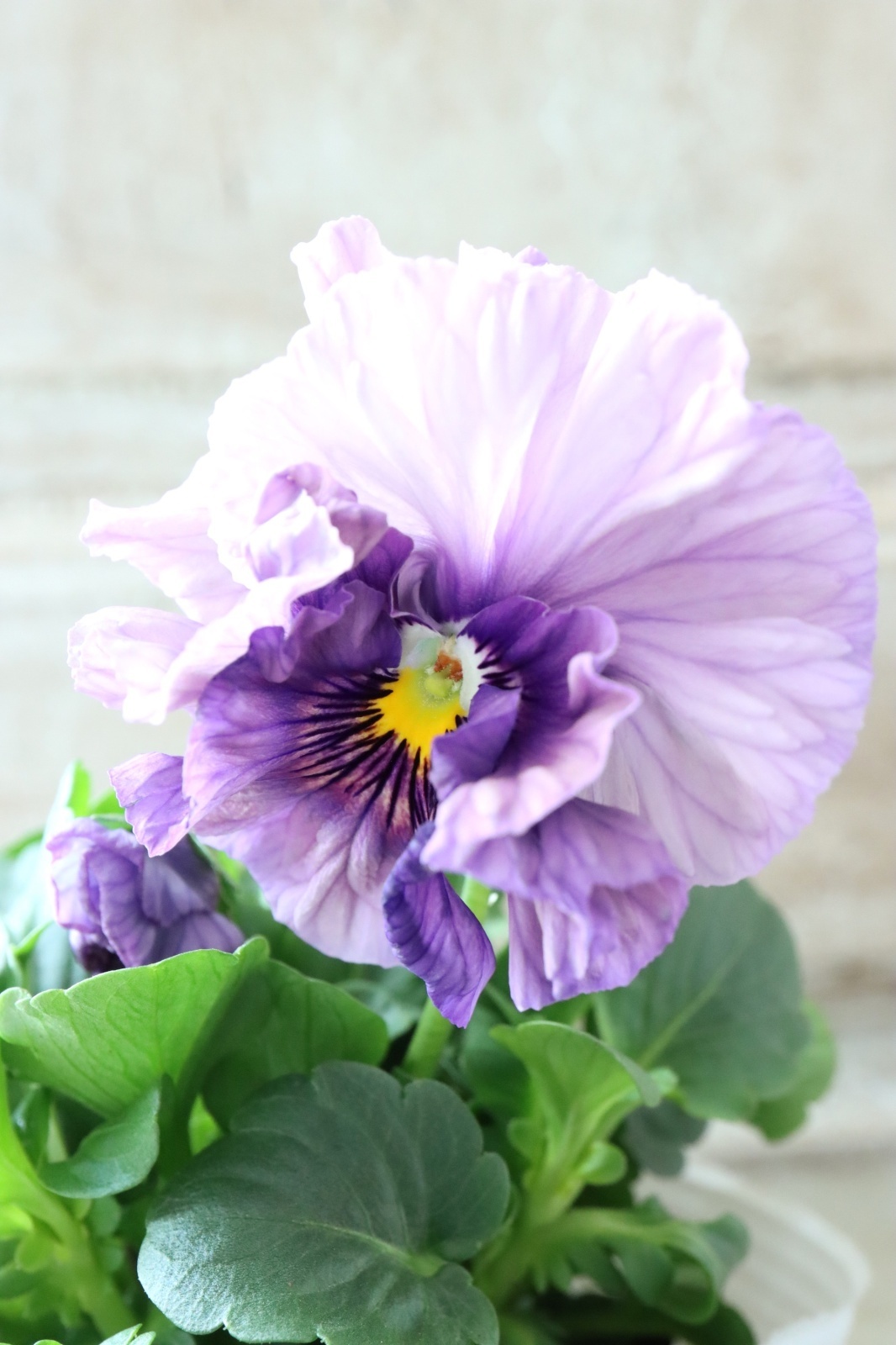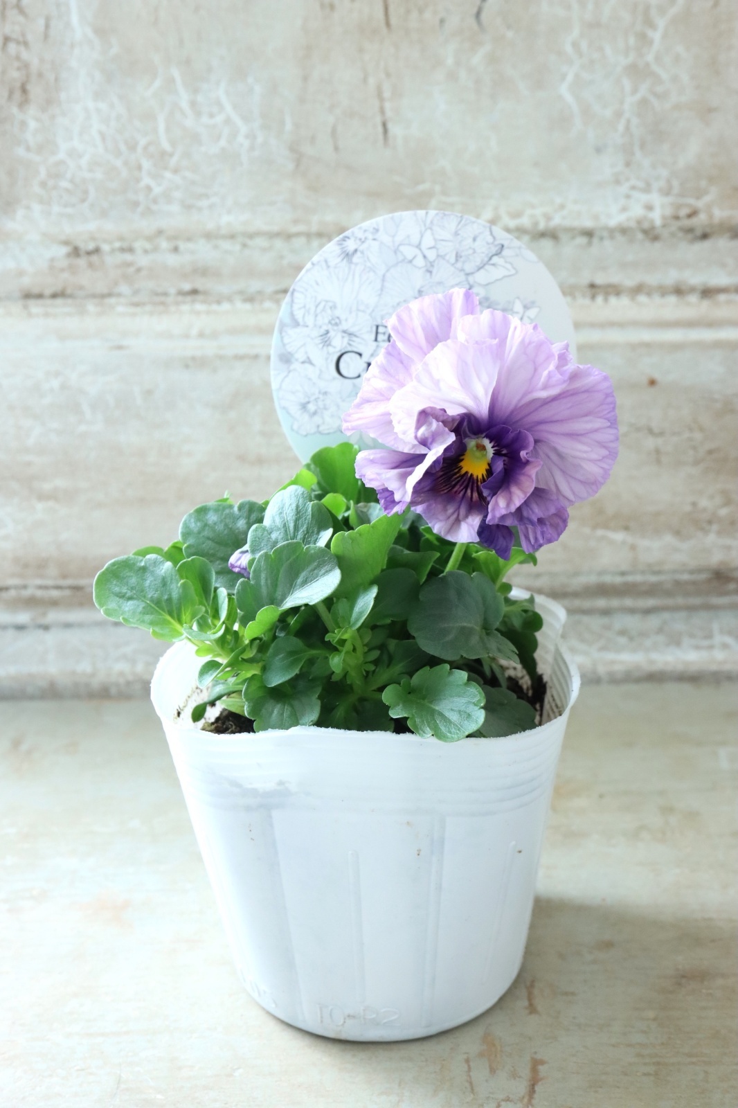 大輪で上品な花色と細かなクレープのある花弁が特徴のパンジーです!