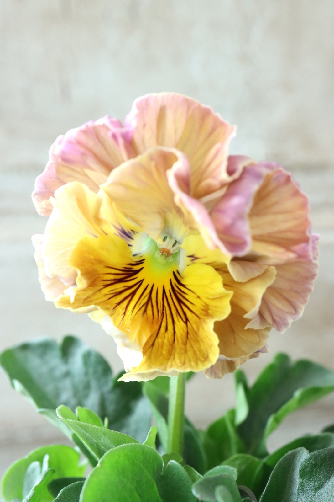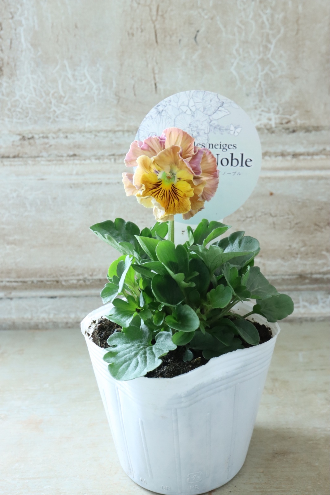 大輪で上品な花色と細かなクレープのある花弁が特徴のパンジーです!