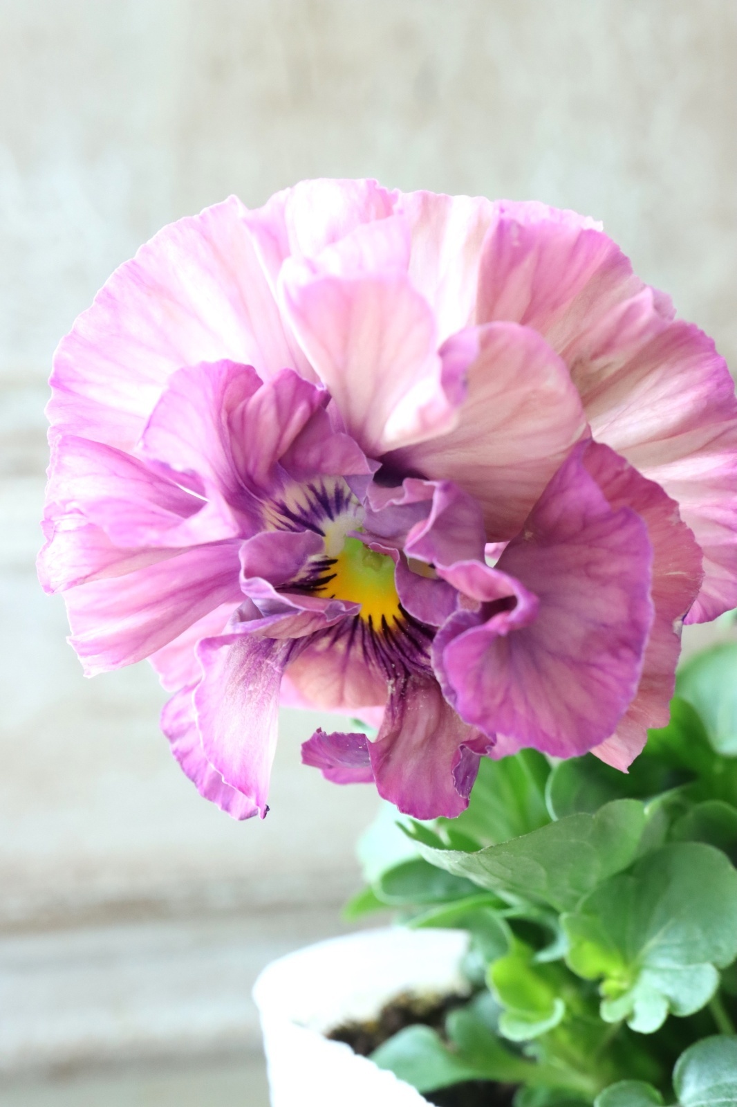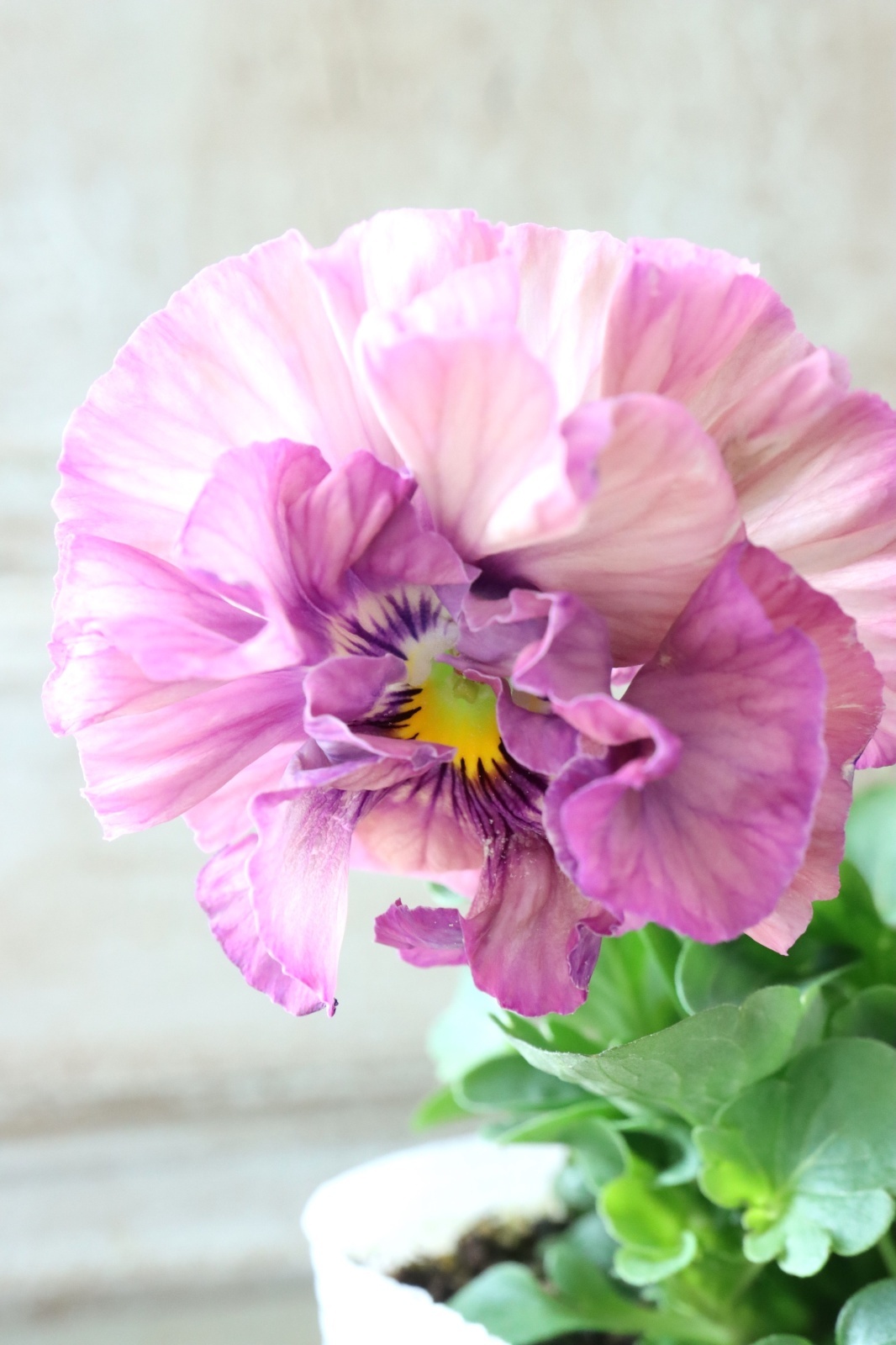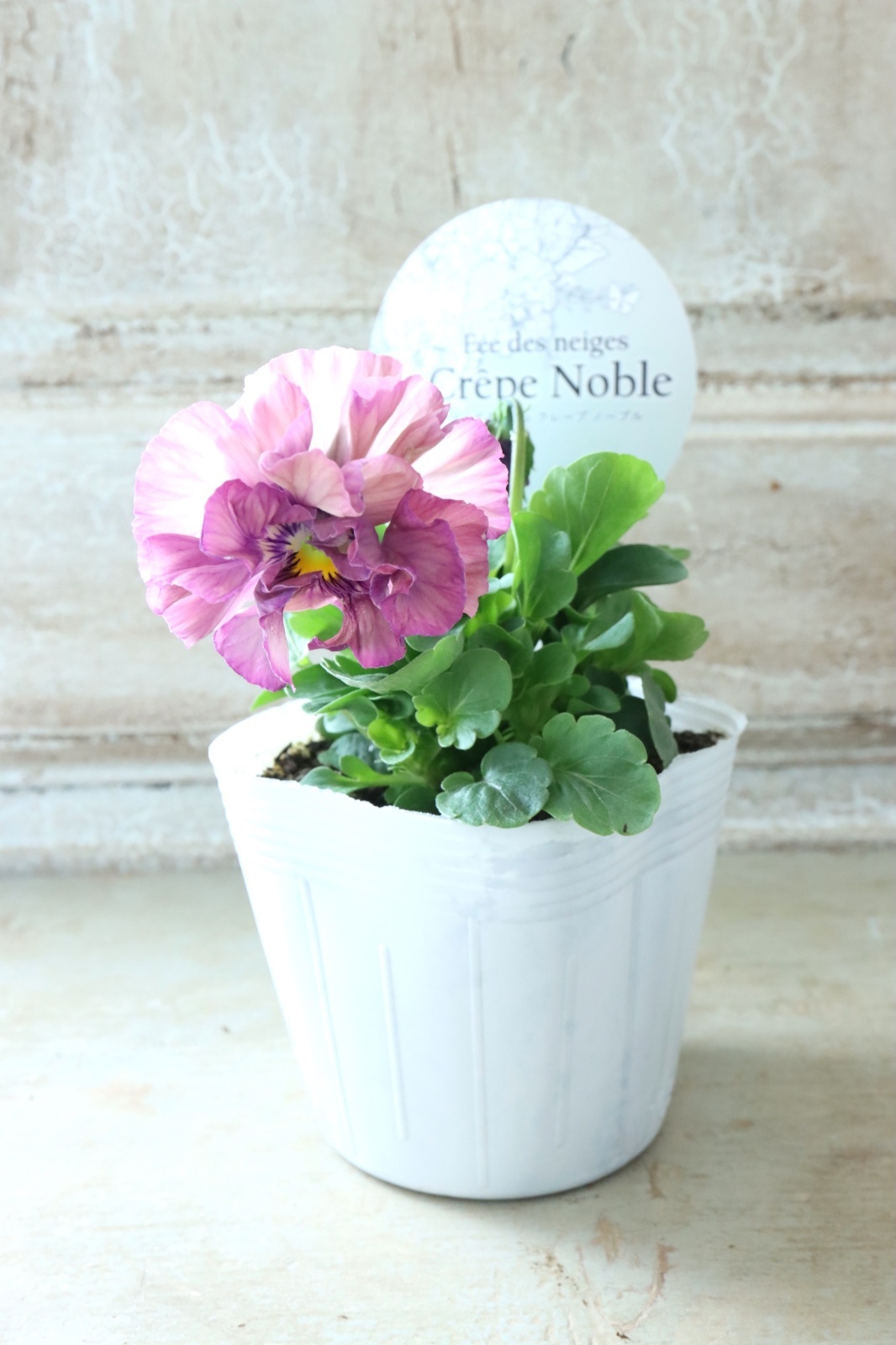 大輪で上品な花色と細かなクレープのある花弁が特徴のパンジーです!
