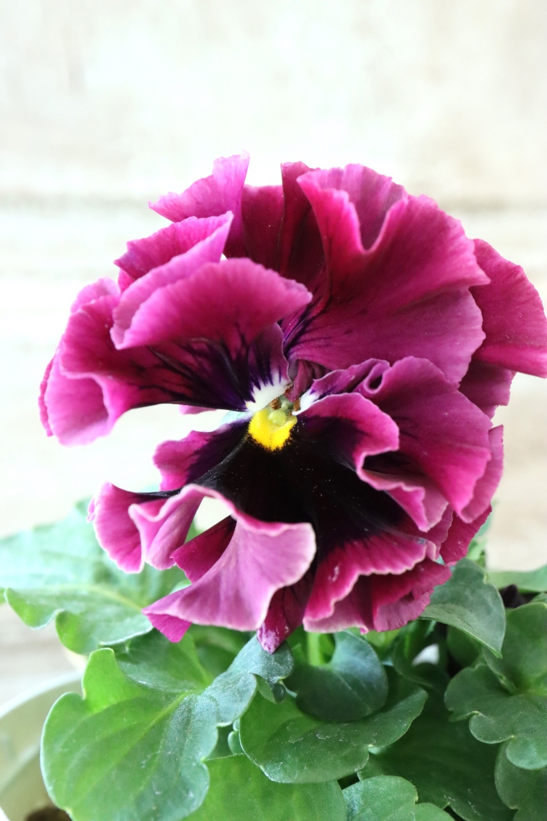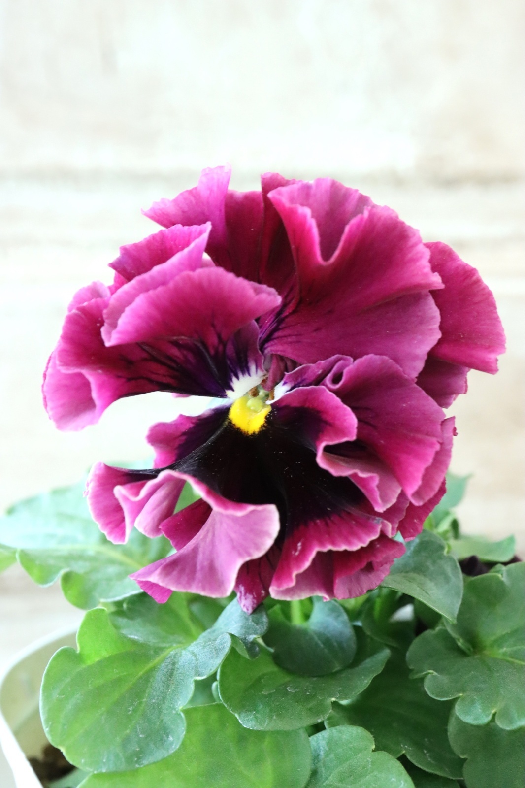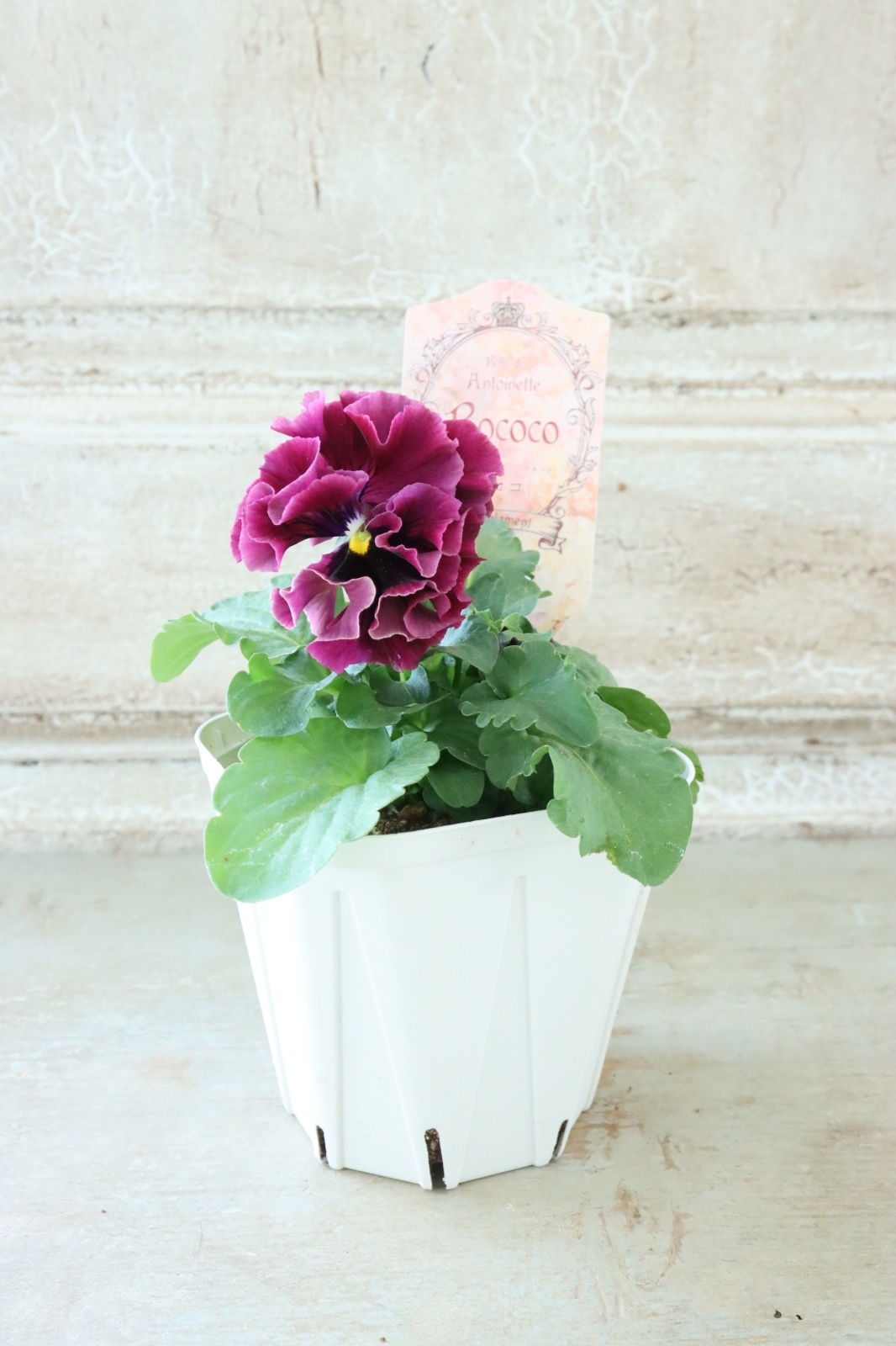 ローブ・ドゥ・アントワネットから生まれた豪華なフリル咲きのパンジーです。