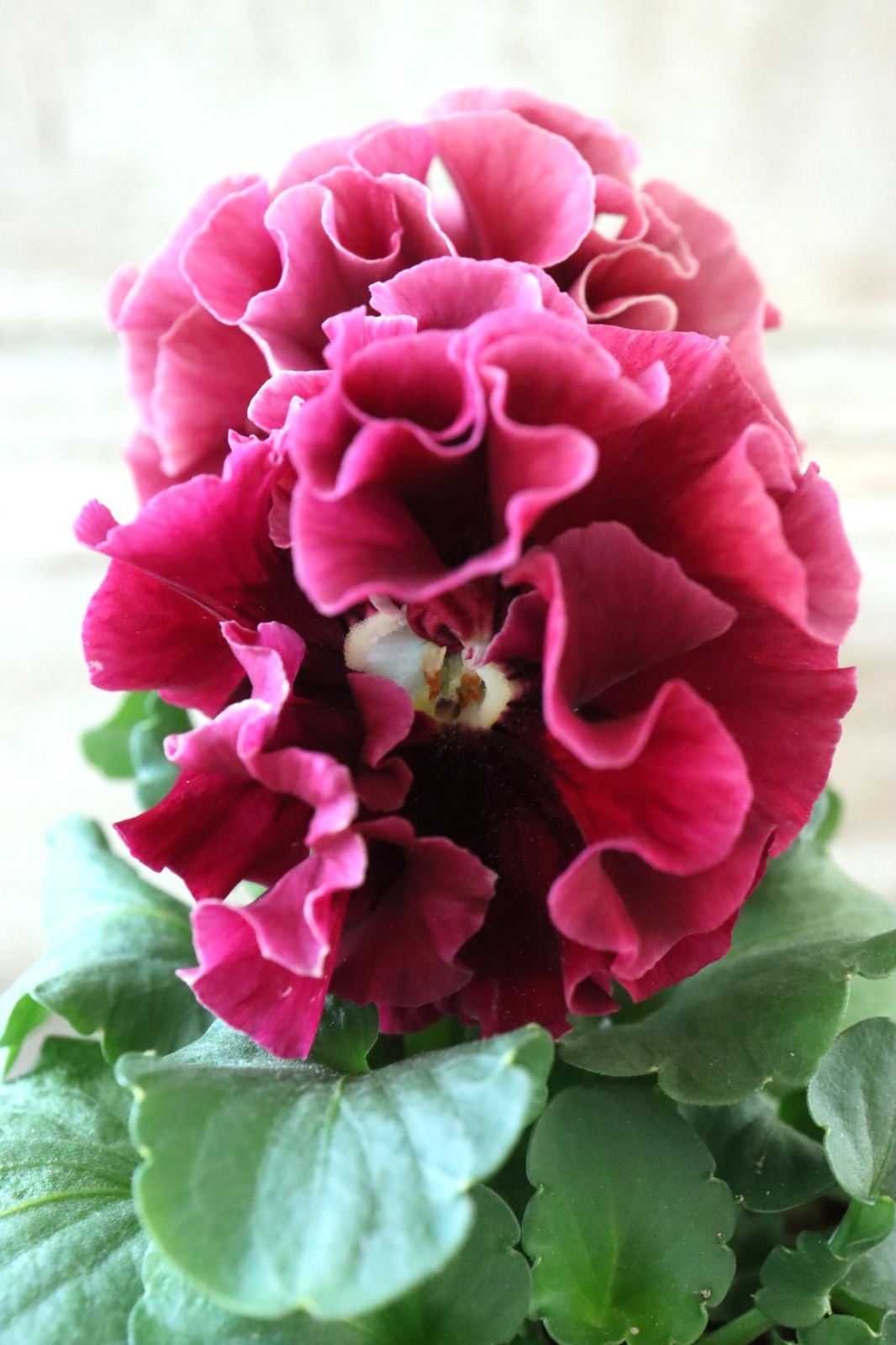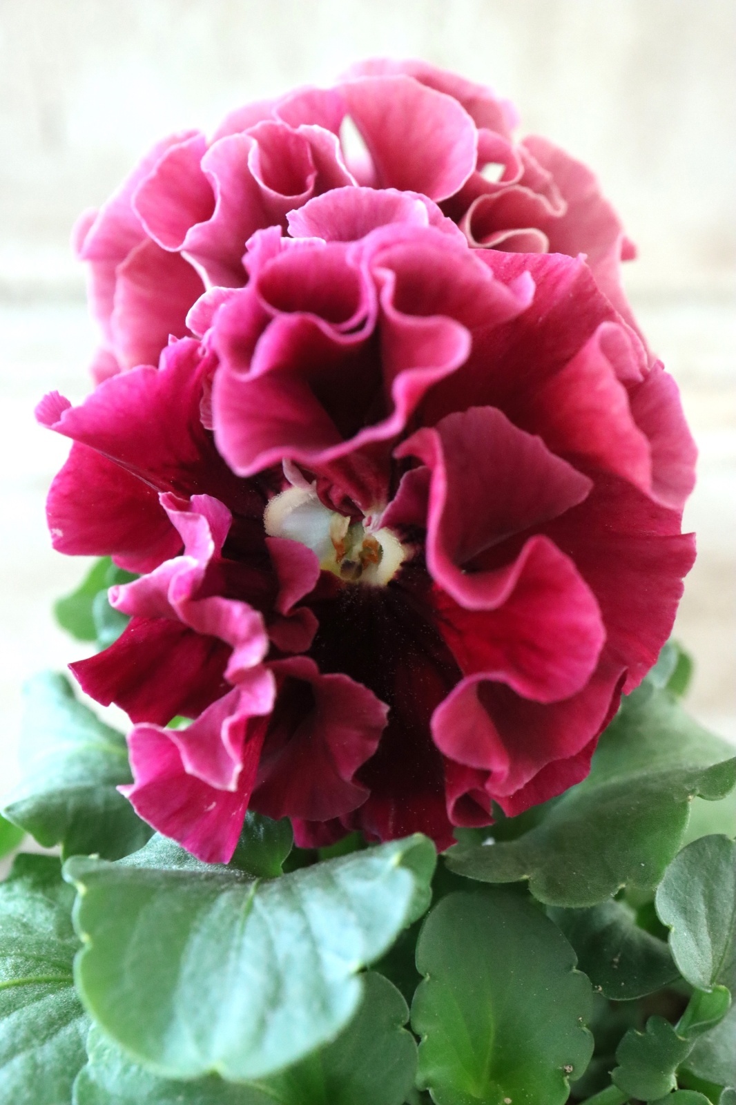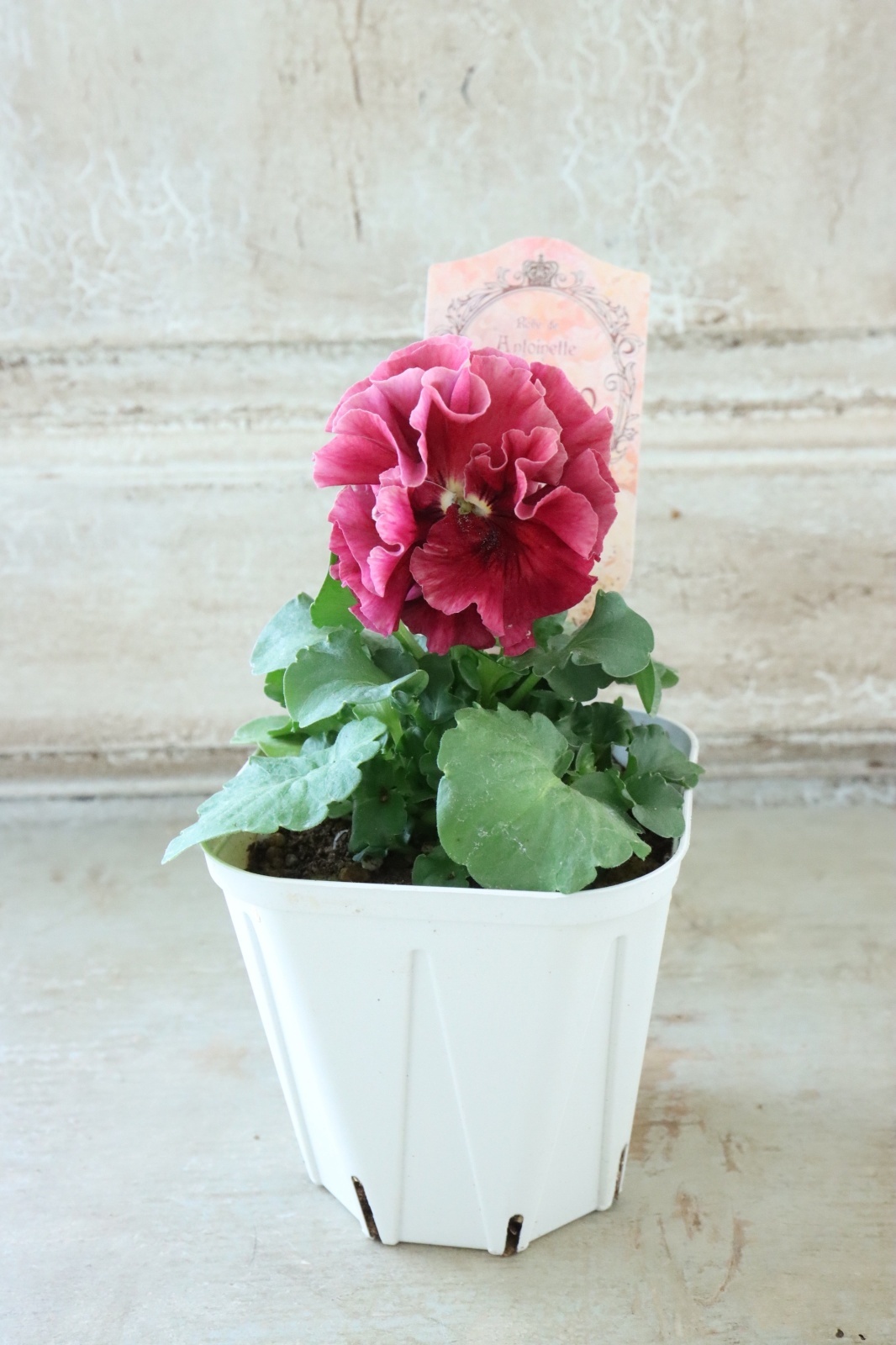 ローブ・ドゥ・アントワネットから生まれた豪華なフリル咲きのパンジーです。