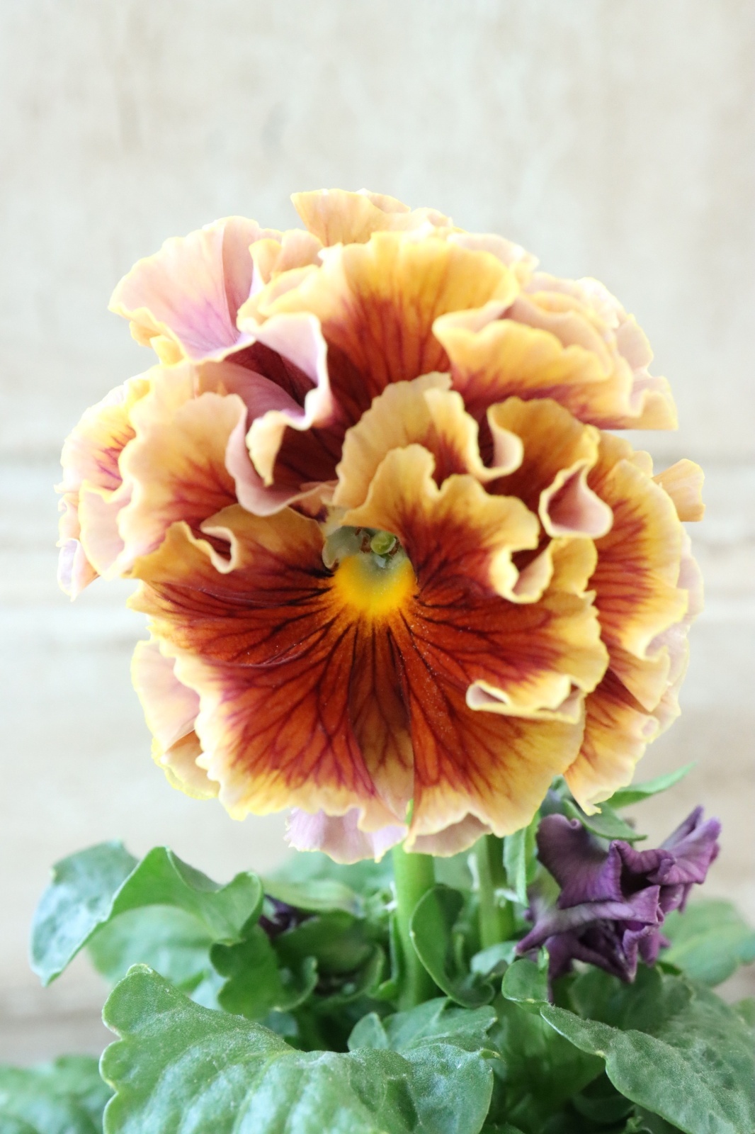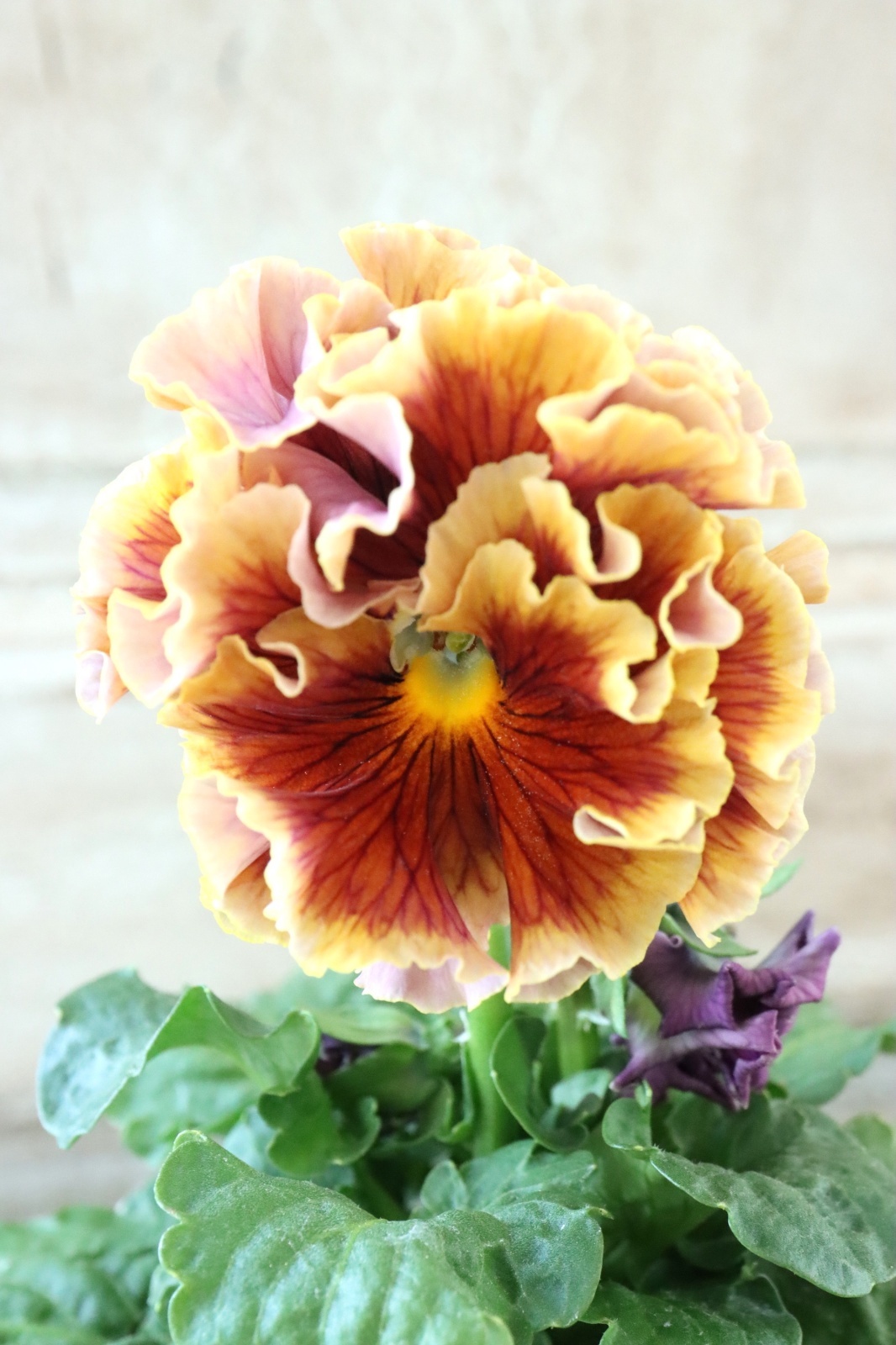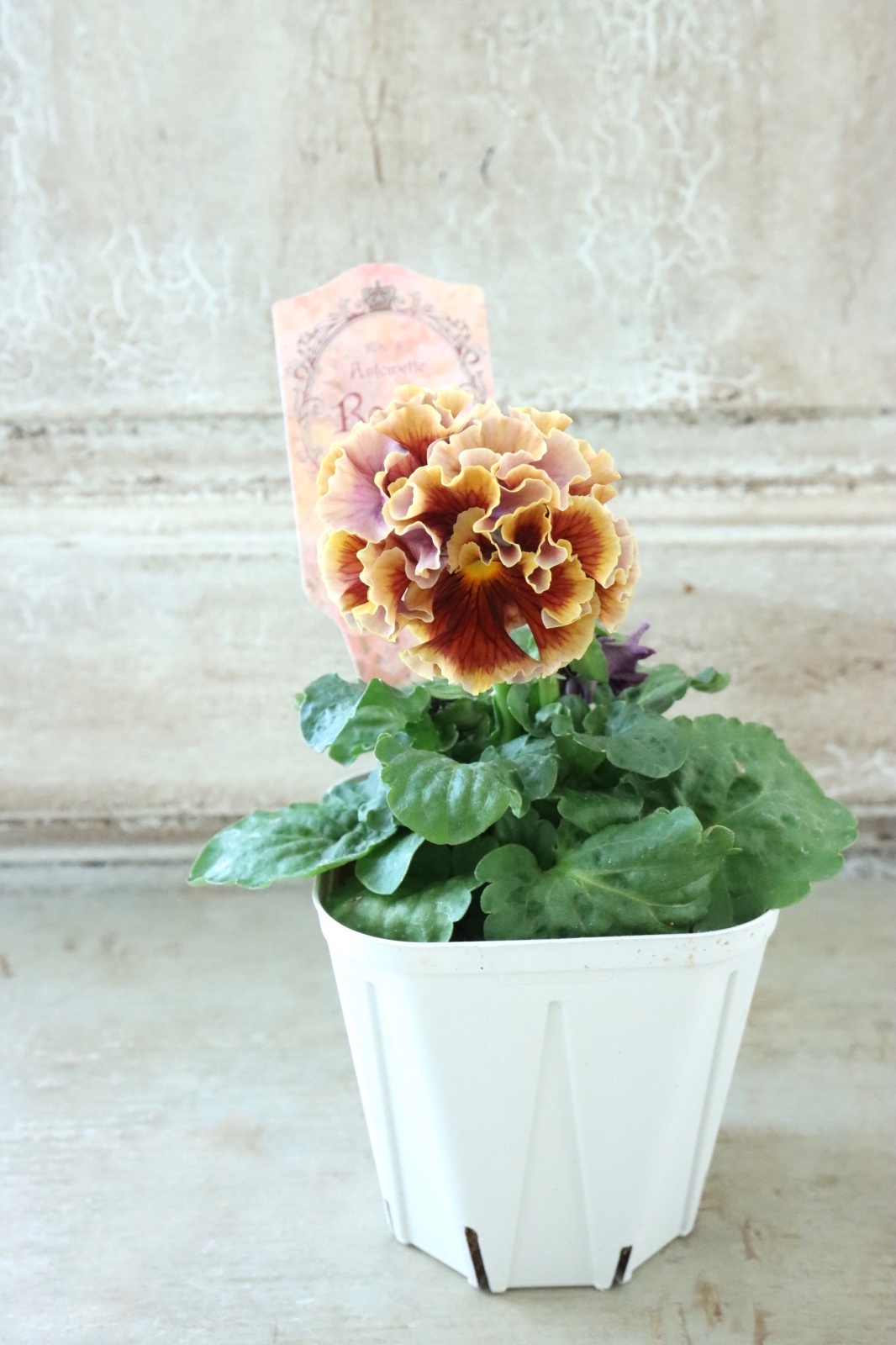 ローブ・ドゥ・アントワネットから生まれた豪華なフリル咲きのパンジーです。