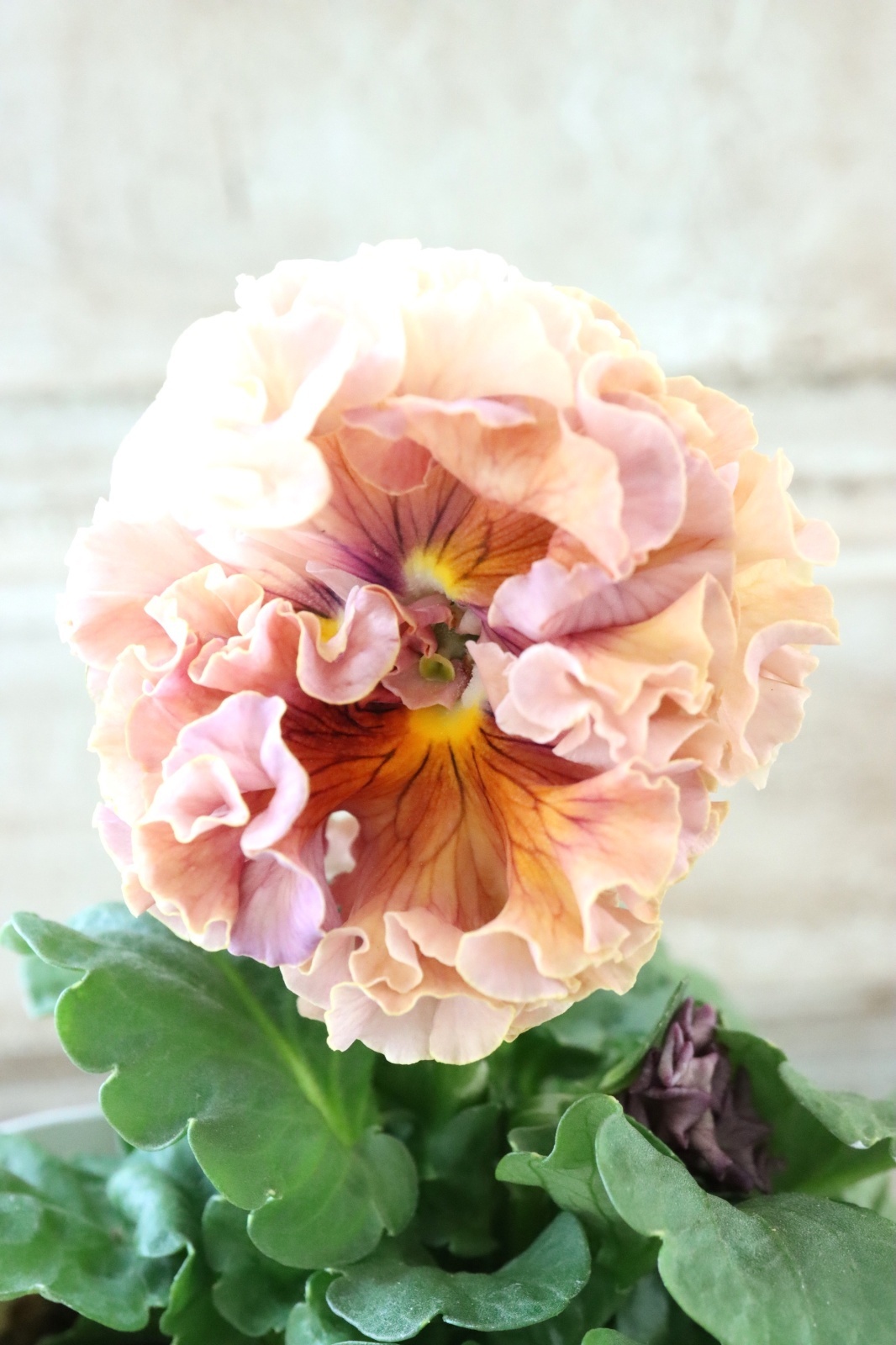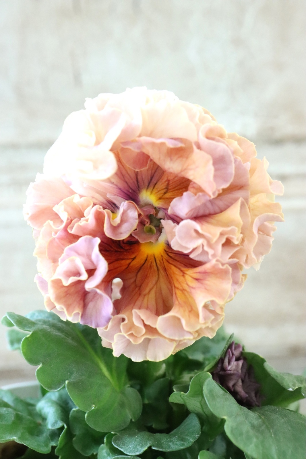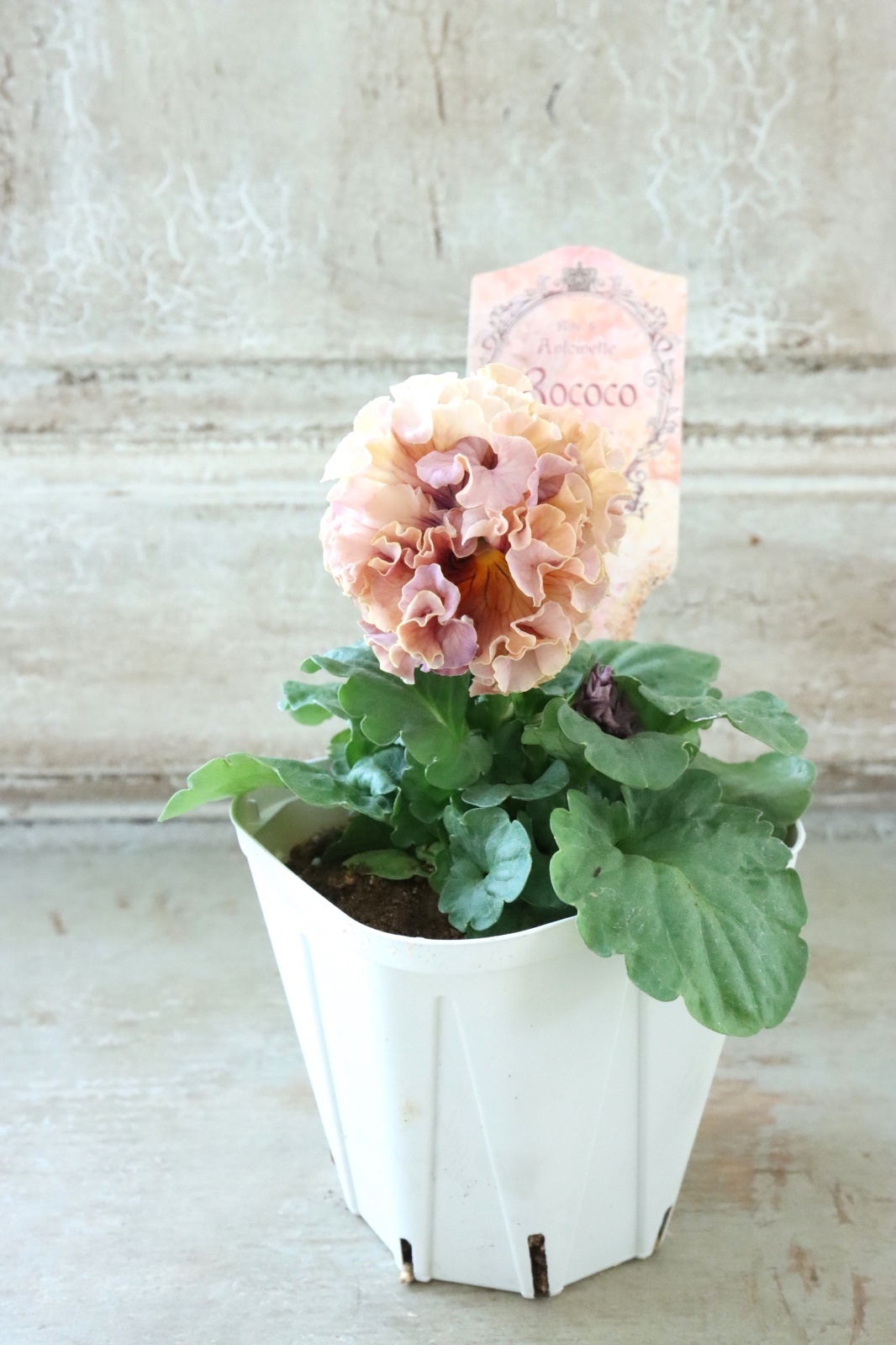 ローブ・ドゥ・アントワネットから生まれた豪華なフリル咲きのパンジーです。