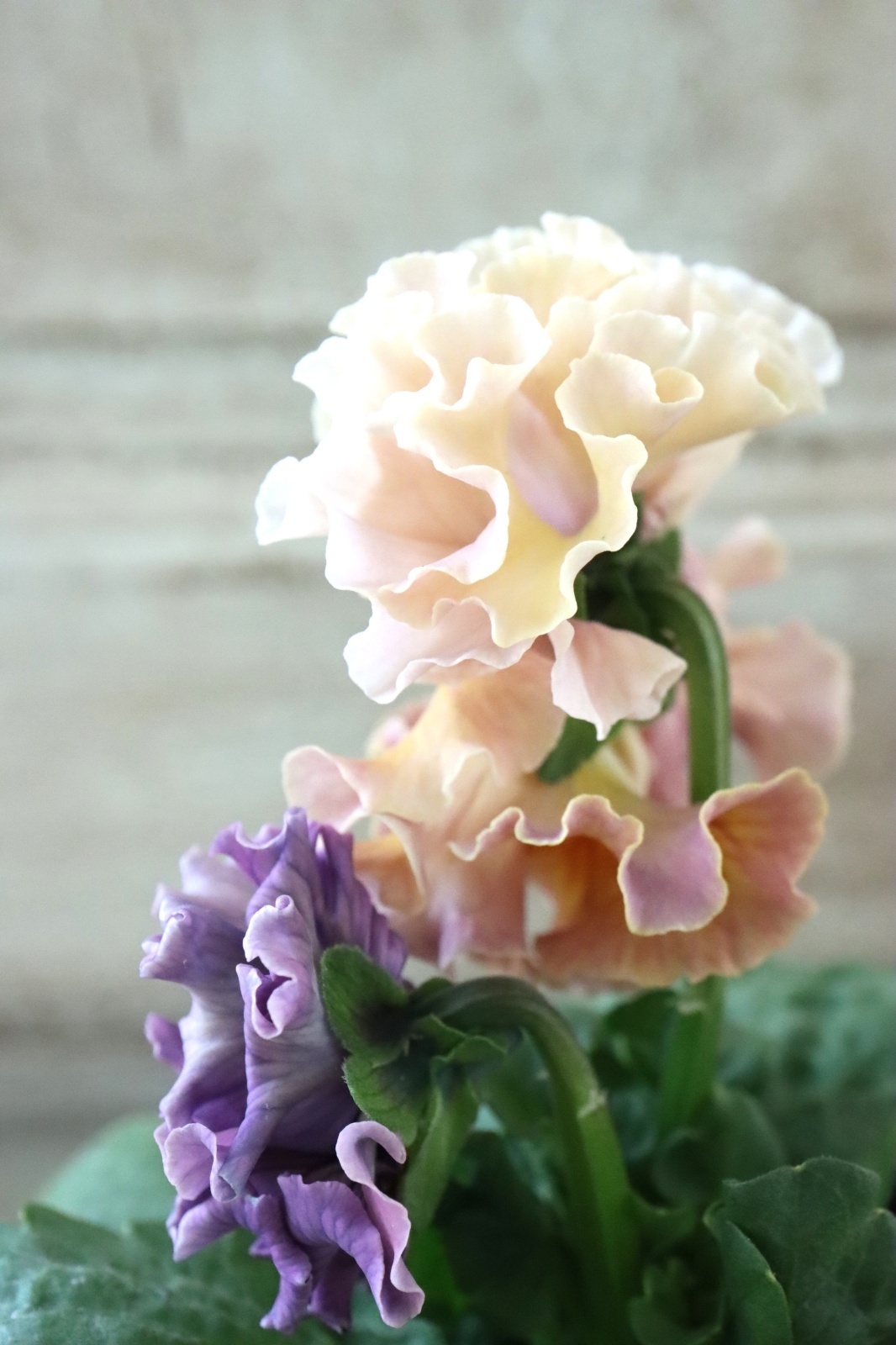 ローブ・ドゥ・アントワネットから生まれた豪華なフリル咲きのパンジーです。