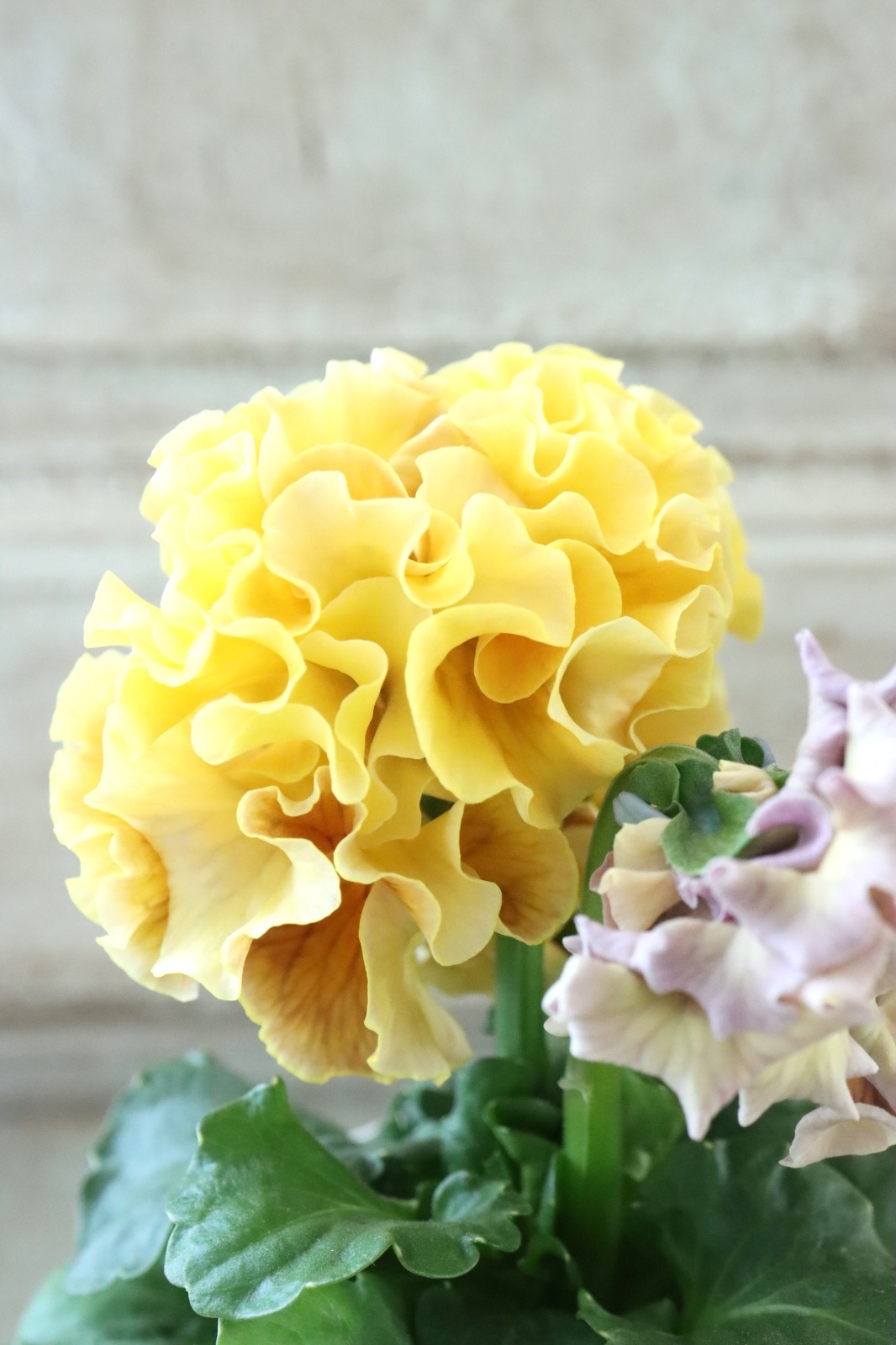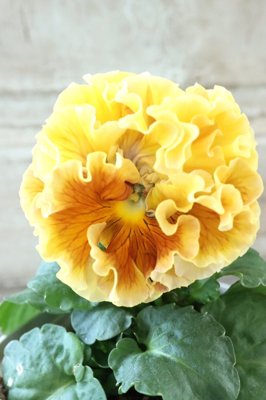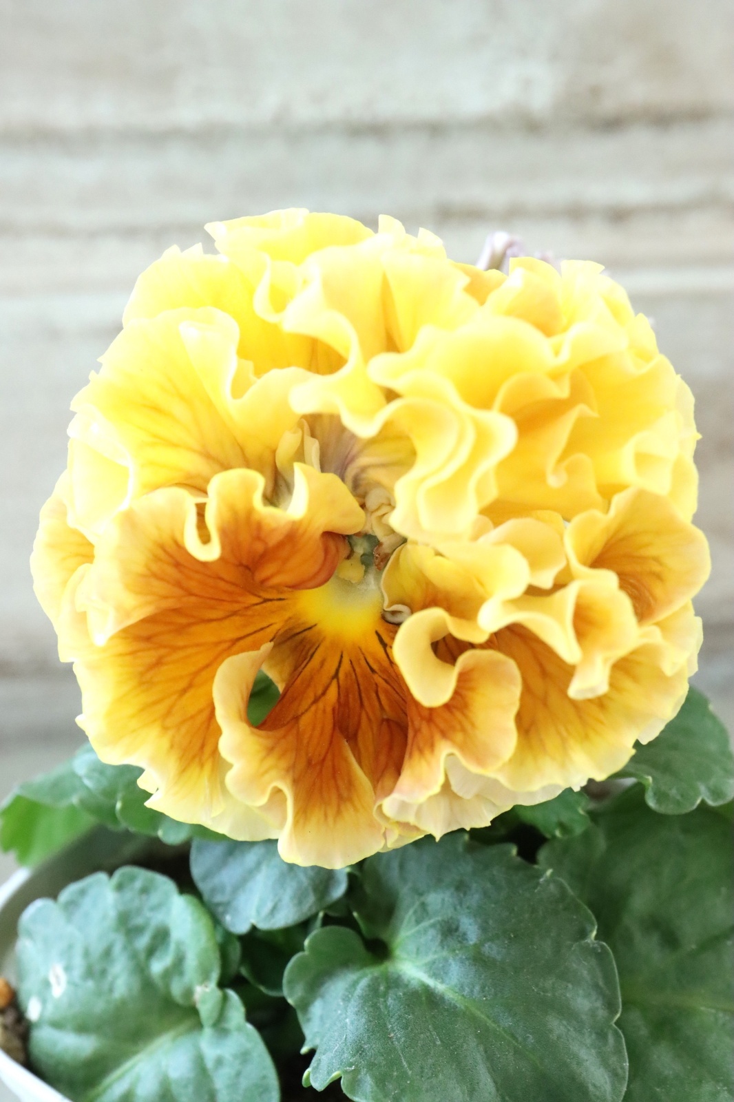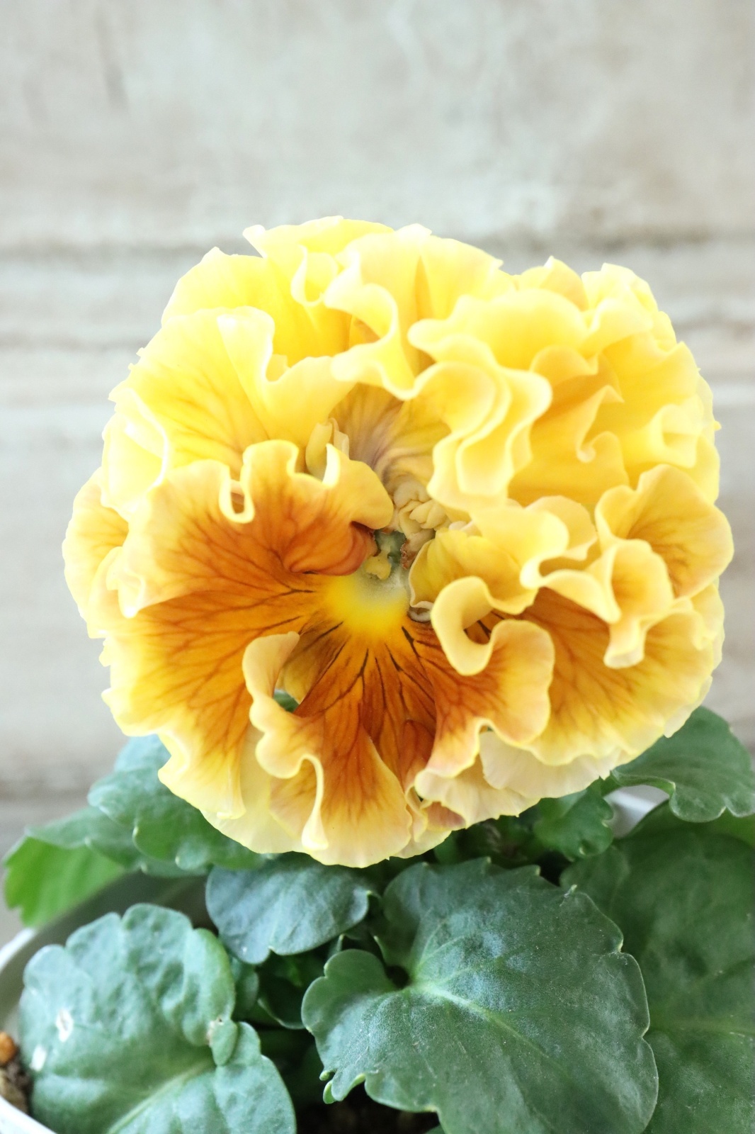ローブ・ドゥ・アントワネットから生まれた豪華なフリル咲きのパンジーです。