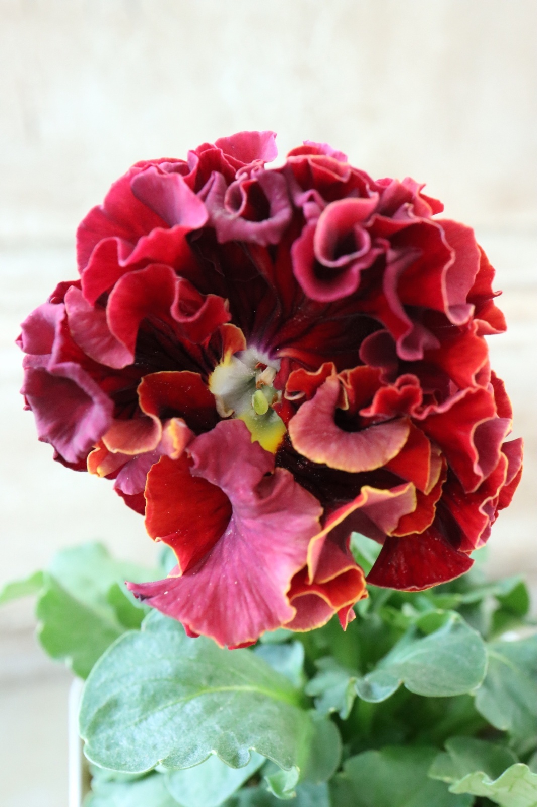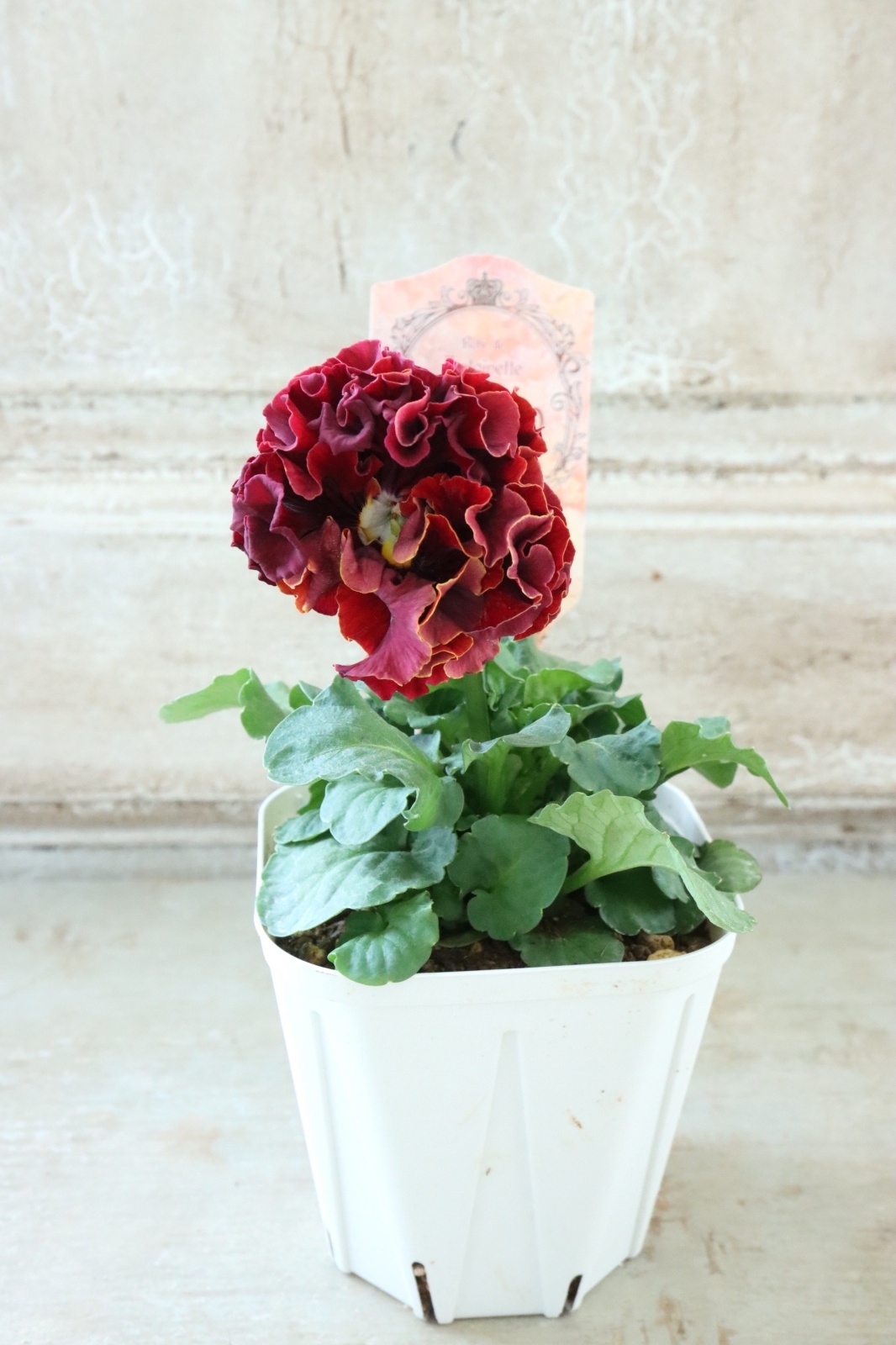 ローブ・ドゥ・アントワネットから生まれた豪華なフリル咲きのパンジーです。