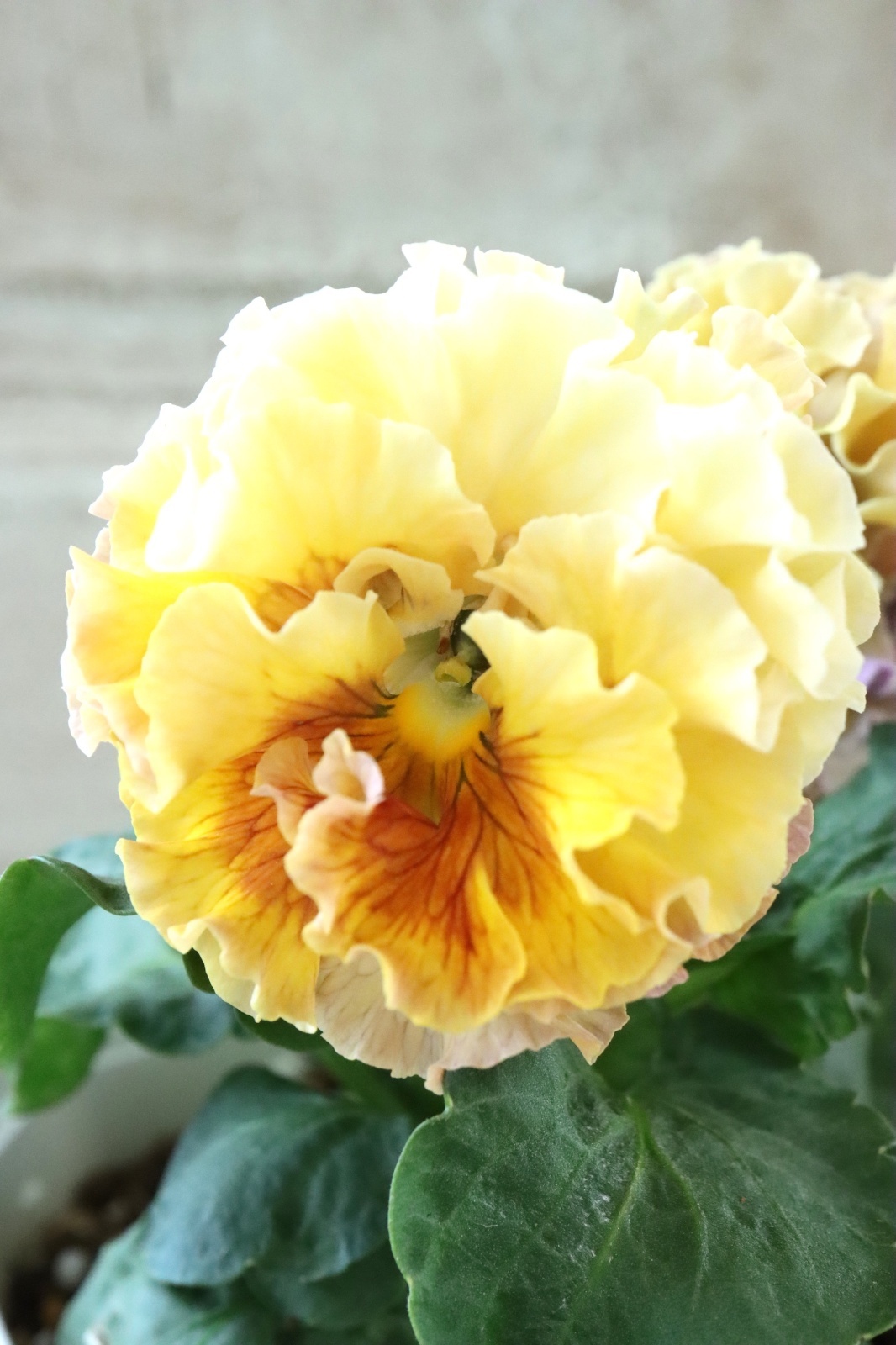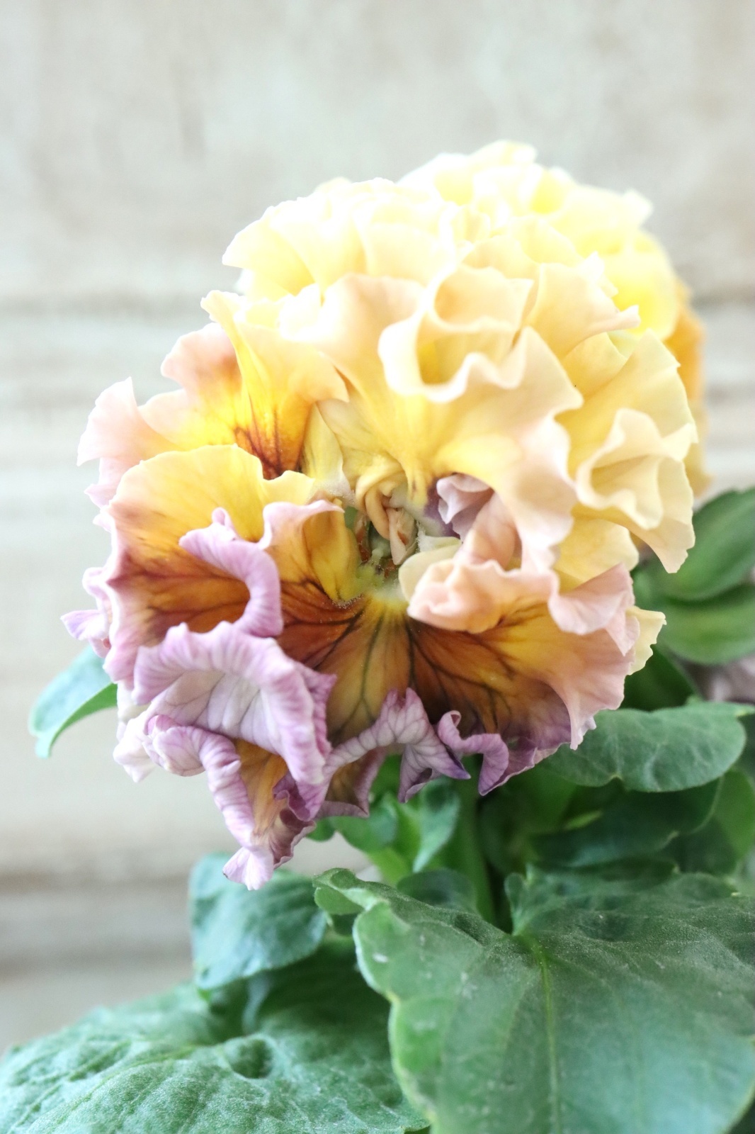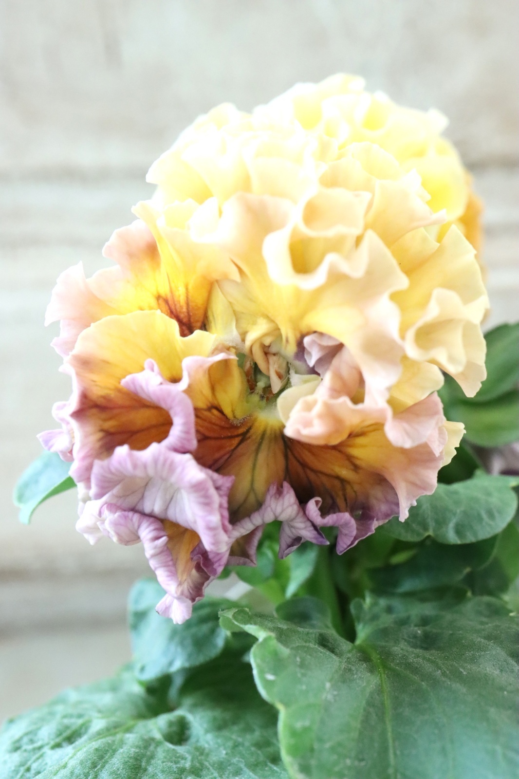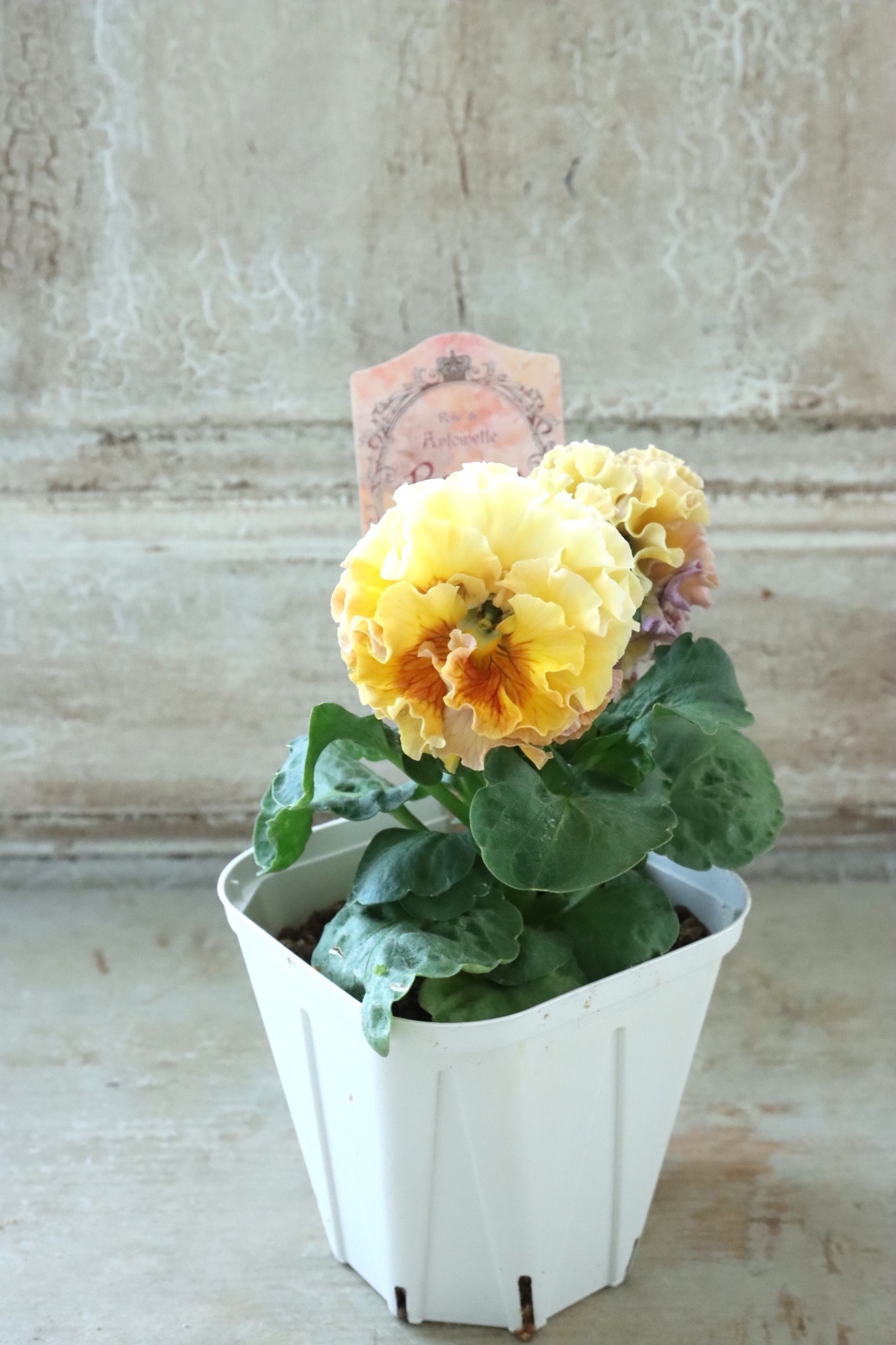 ローブ・ドゥ・アントワネットから生まれた豪華なフリル咲きのパンジーです。