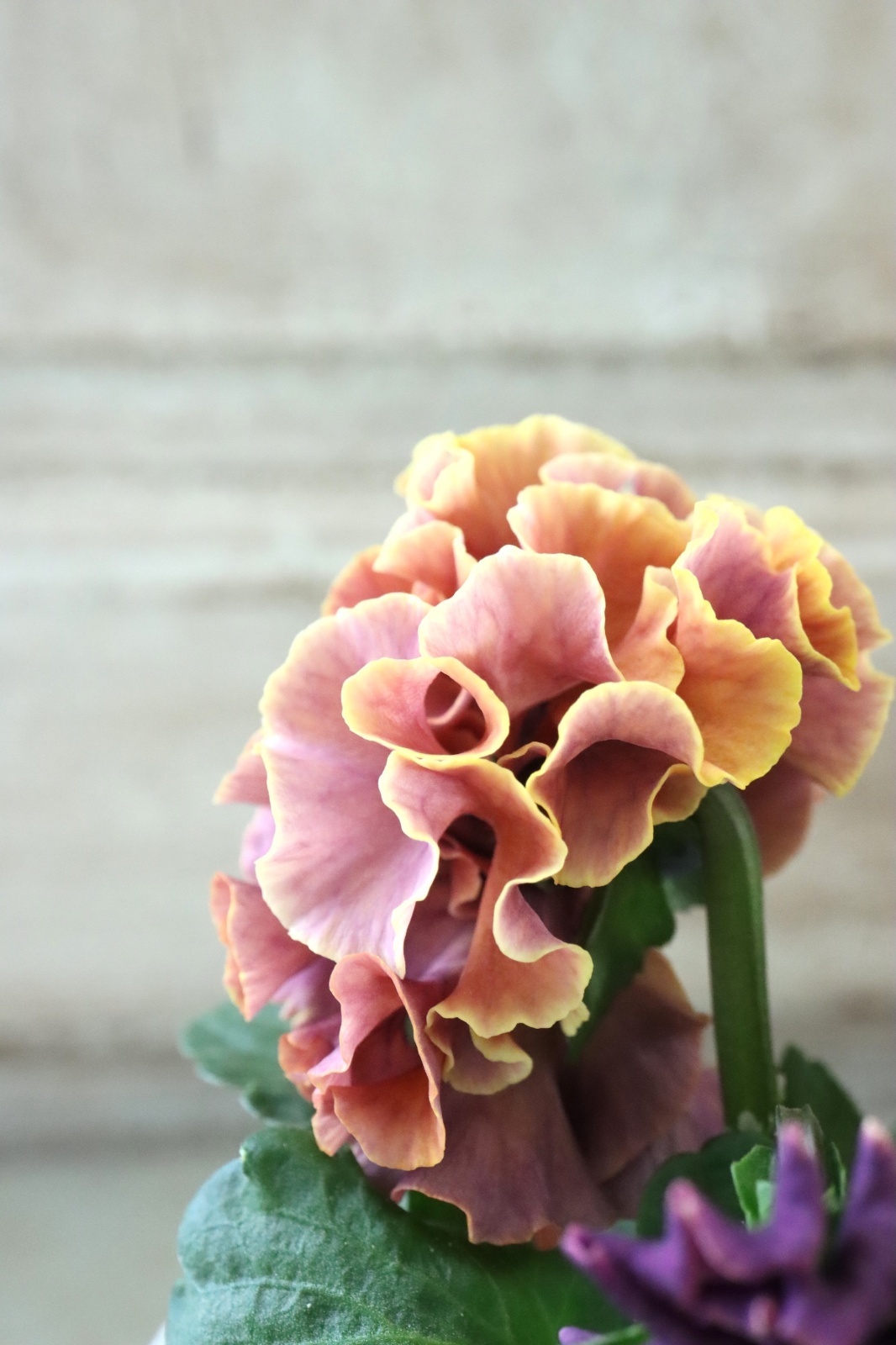 ローブ・ドゥ・アントワネットから生まれた豪華なフリル咲きのパンジーです。