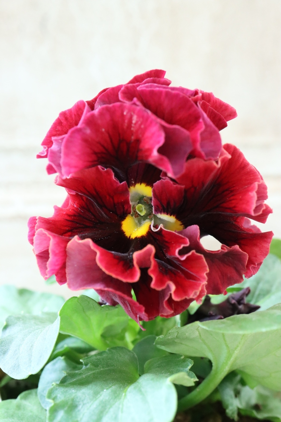 ローブ・ドゥ・アントワネットから生まれた豪華なフリル咲きのパンジーです。