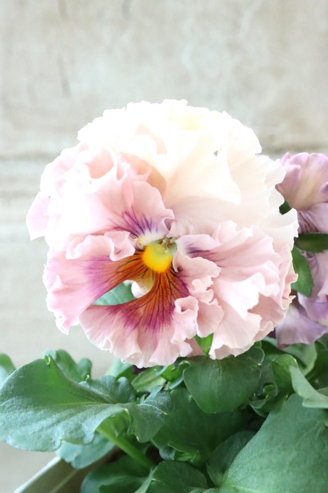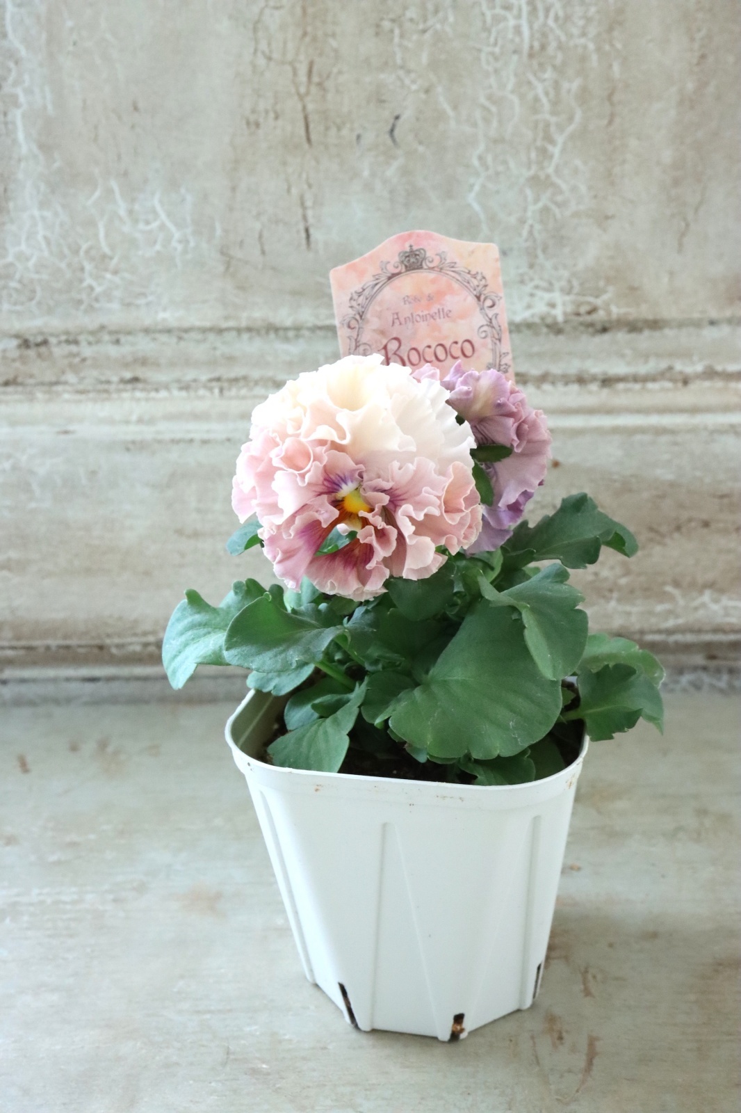 ローブ・ドゥ・アントワネットから生まれた豪華なフリル咲きのパンジーです。