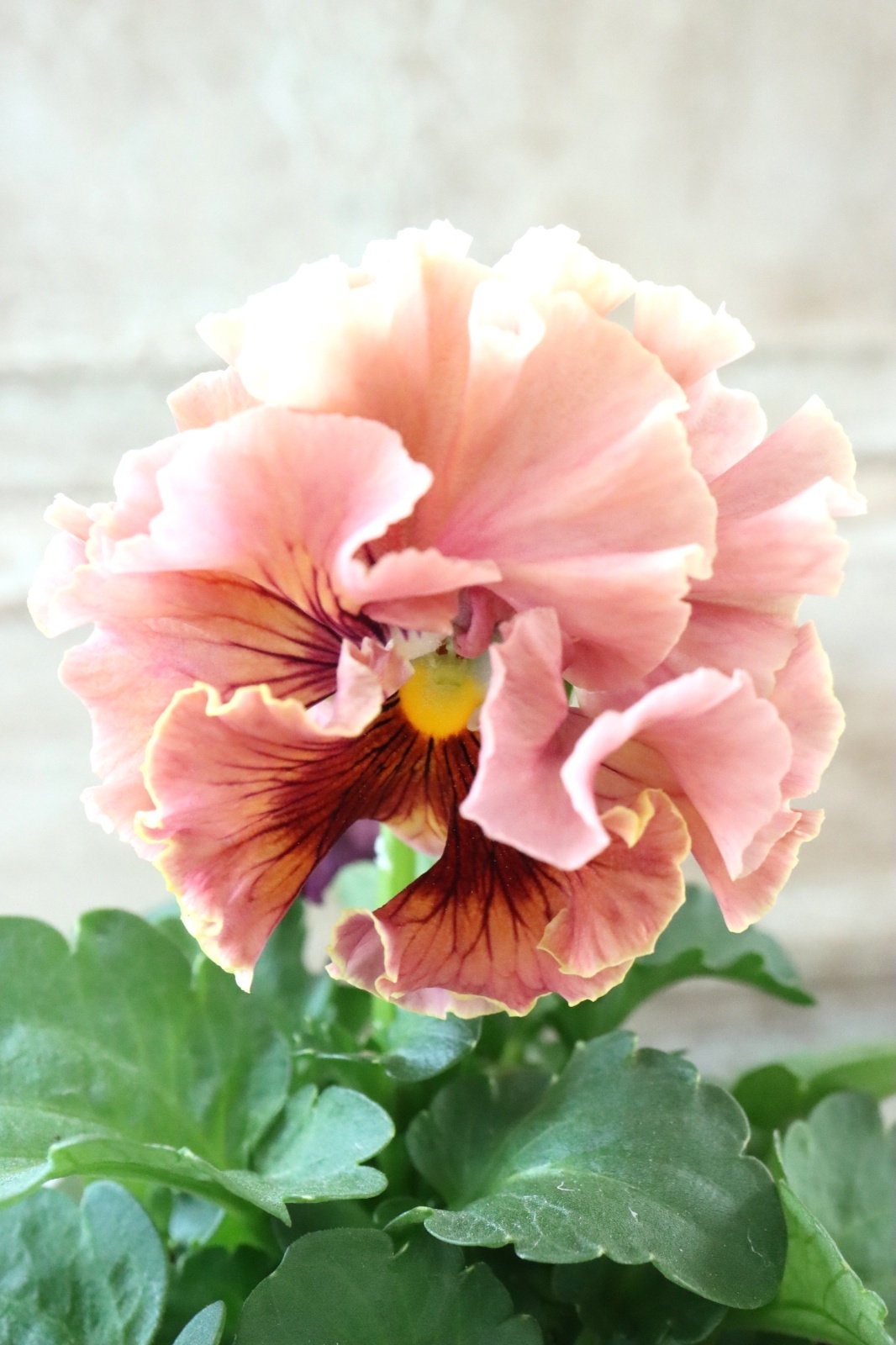 ローブ・ドゥ・アントワネットから生まれた豪華なフリル咲きのパンジーです。