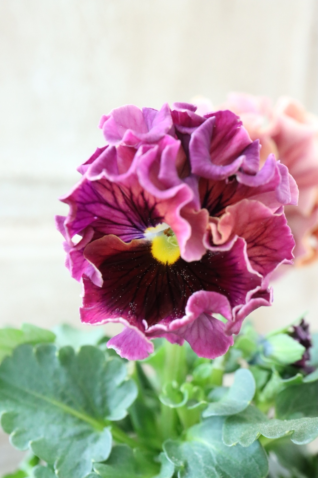 ローブ・ドゥ・アントワネットから生まれた豪華なフリル咲きのパンジーです。