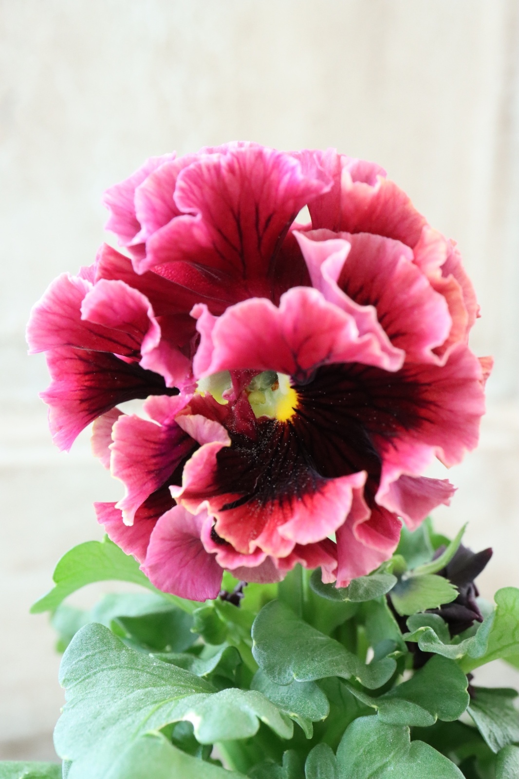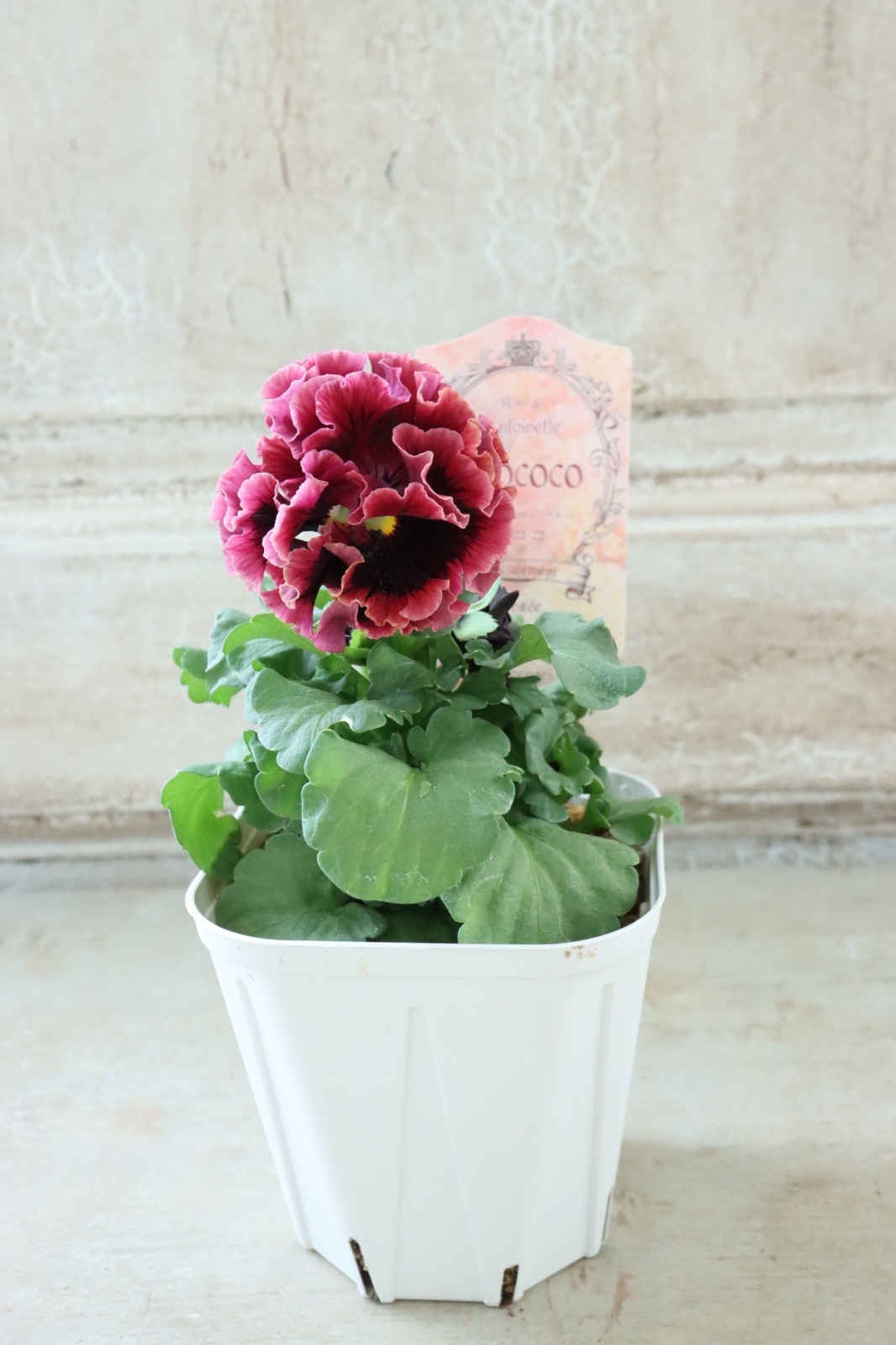 ローブ・ドゥ・アントワネットから生まれた豪華なフリル咲きのパンジーです。