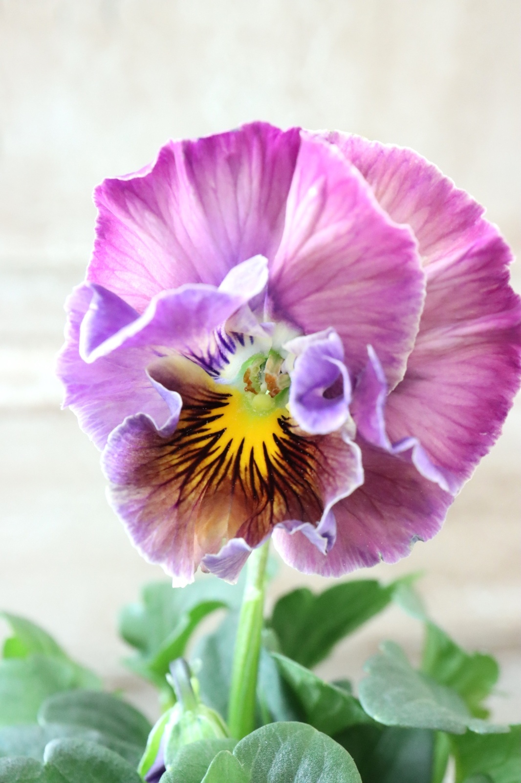 大輪で上品な花色と細かなクレープのある花弁が特徴のパンジーです!