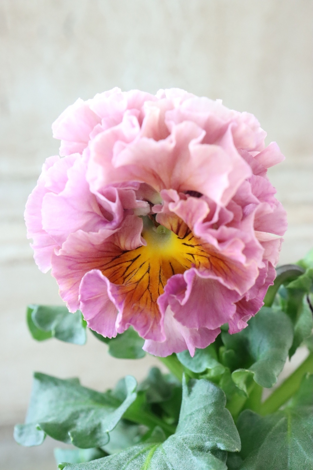 フリルの美しいドレスようなパンジーです
