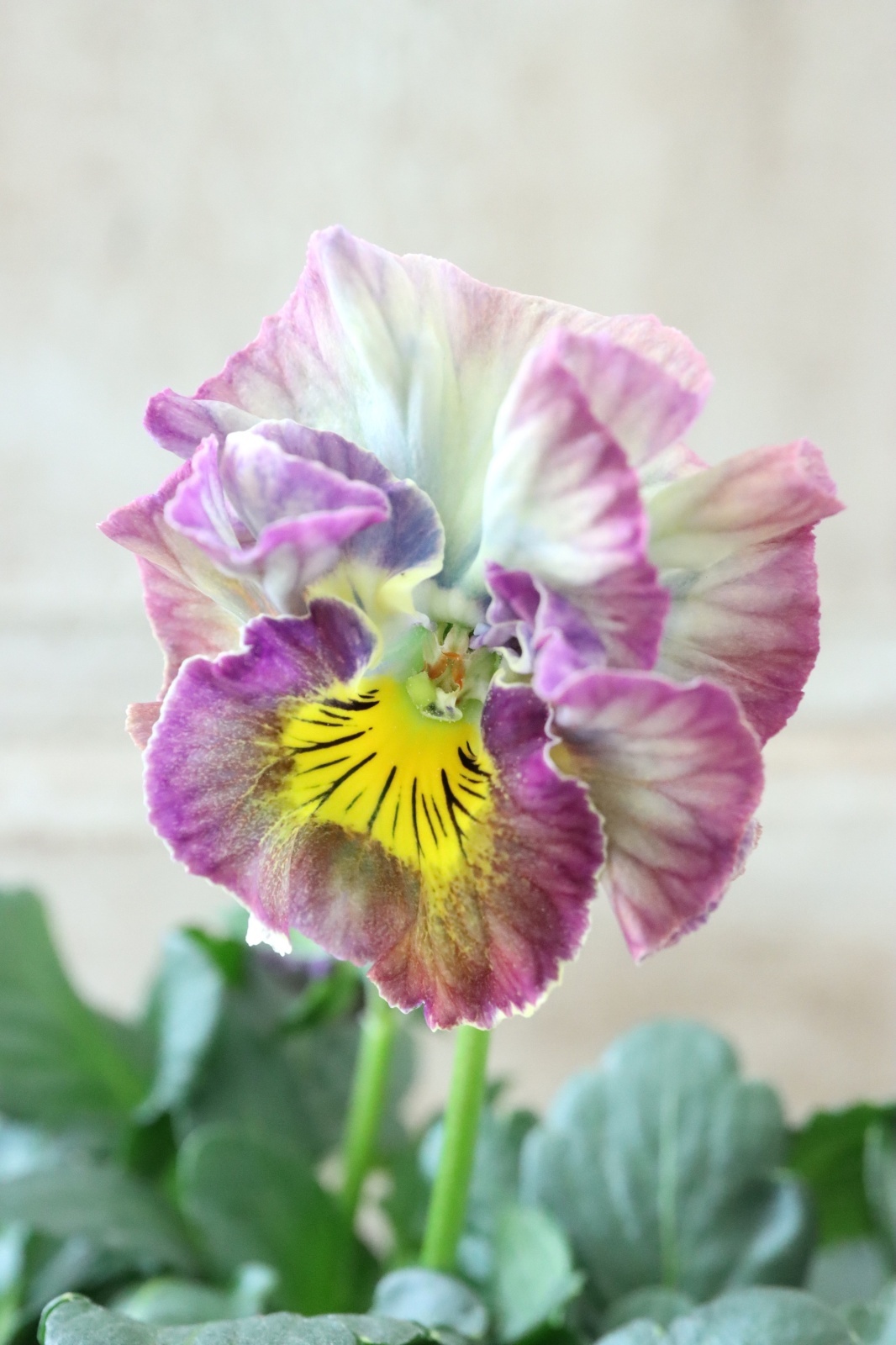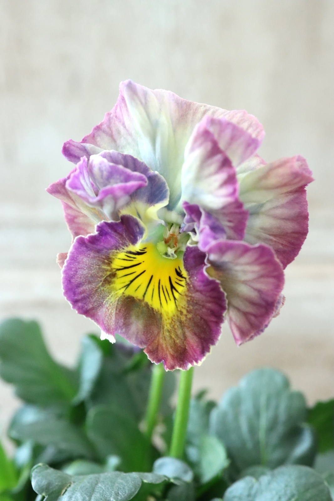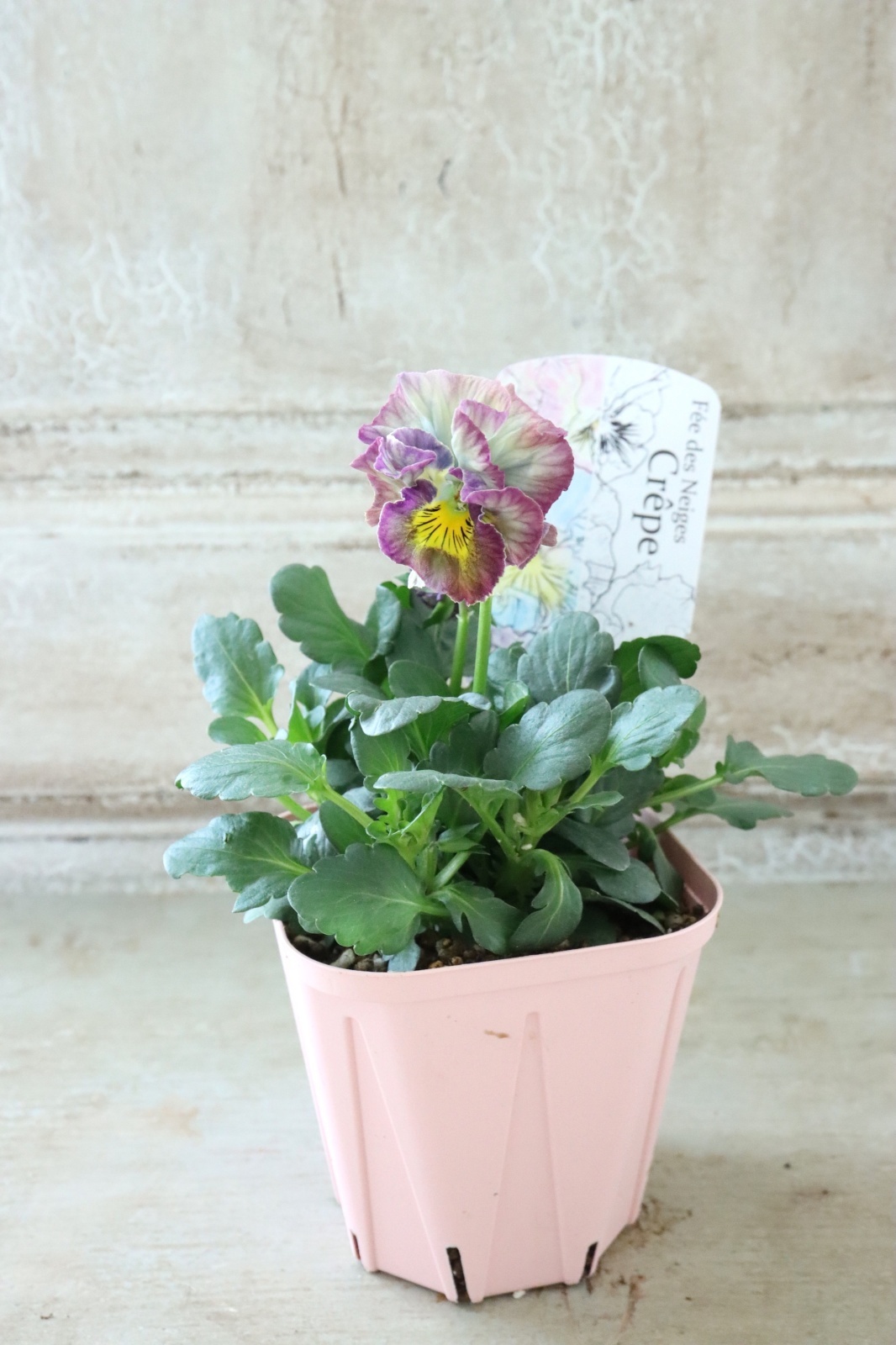 大輪で上品な花色と細かなクレープのある花弁が特徴のパンジーです!