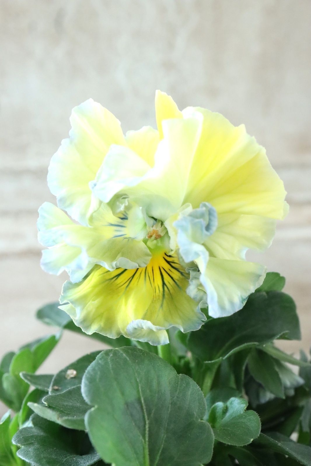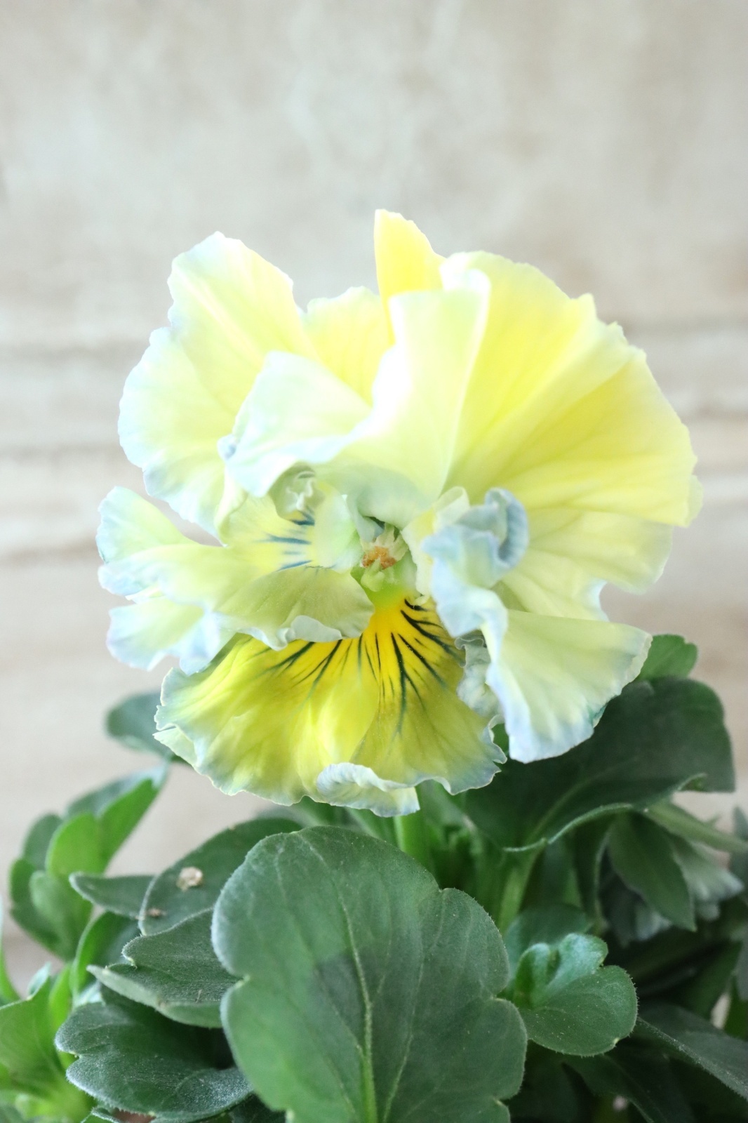 大輪で上品な花色と細かなクレープのある花弁が特徴のパンジーです!