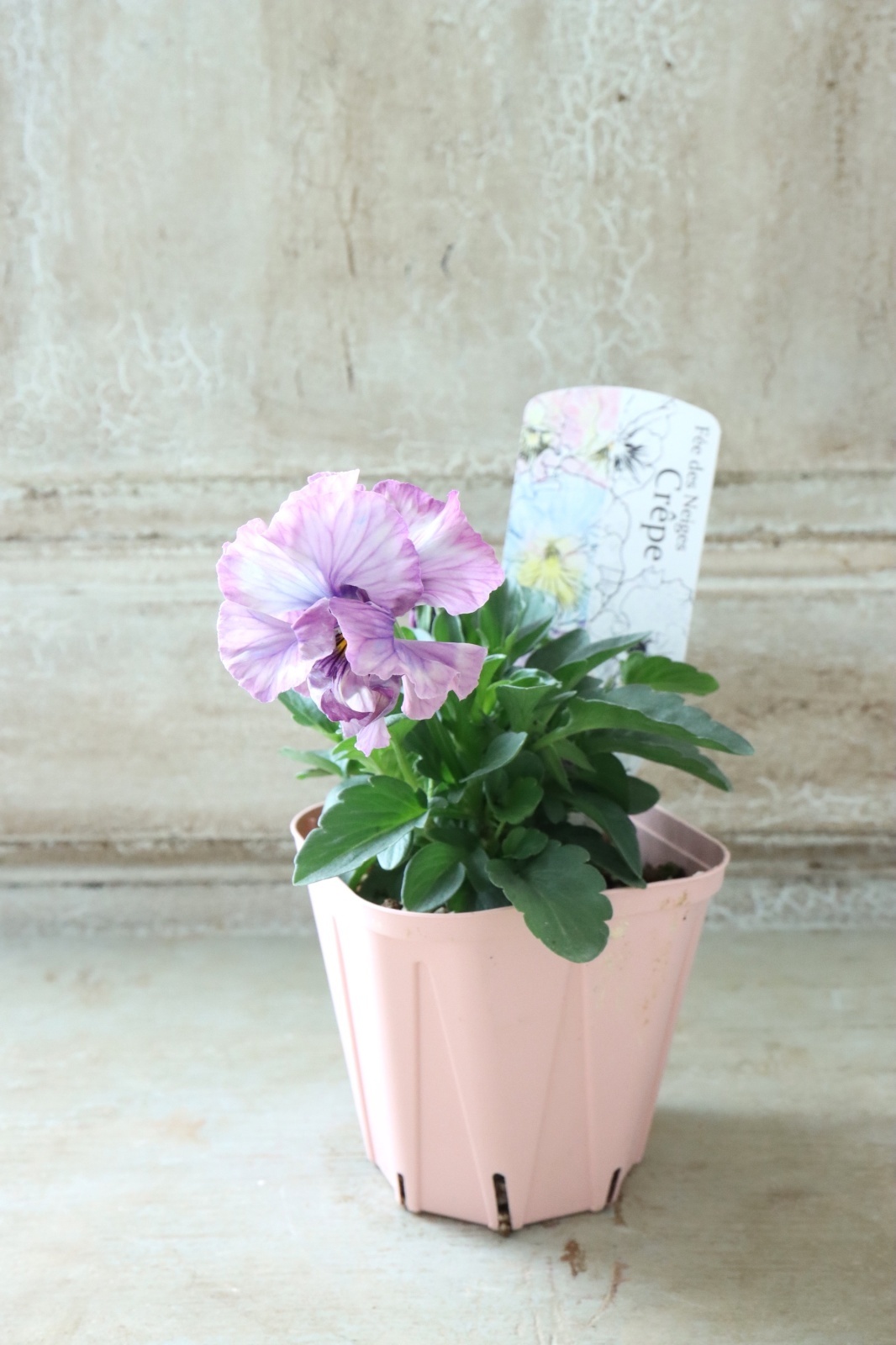 大輪で上品な花色と細かなクレープのある花弁が特徴のパンジーです!