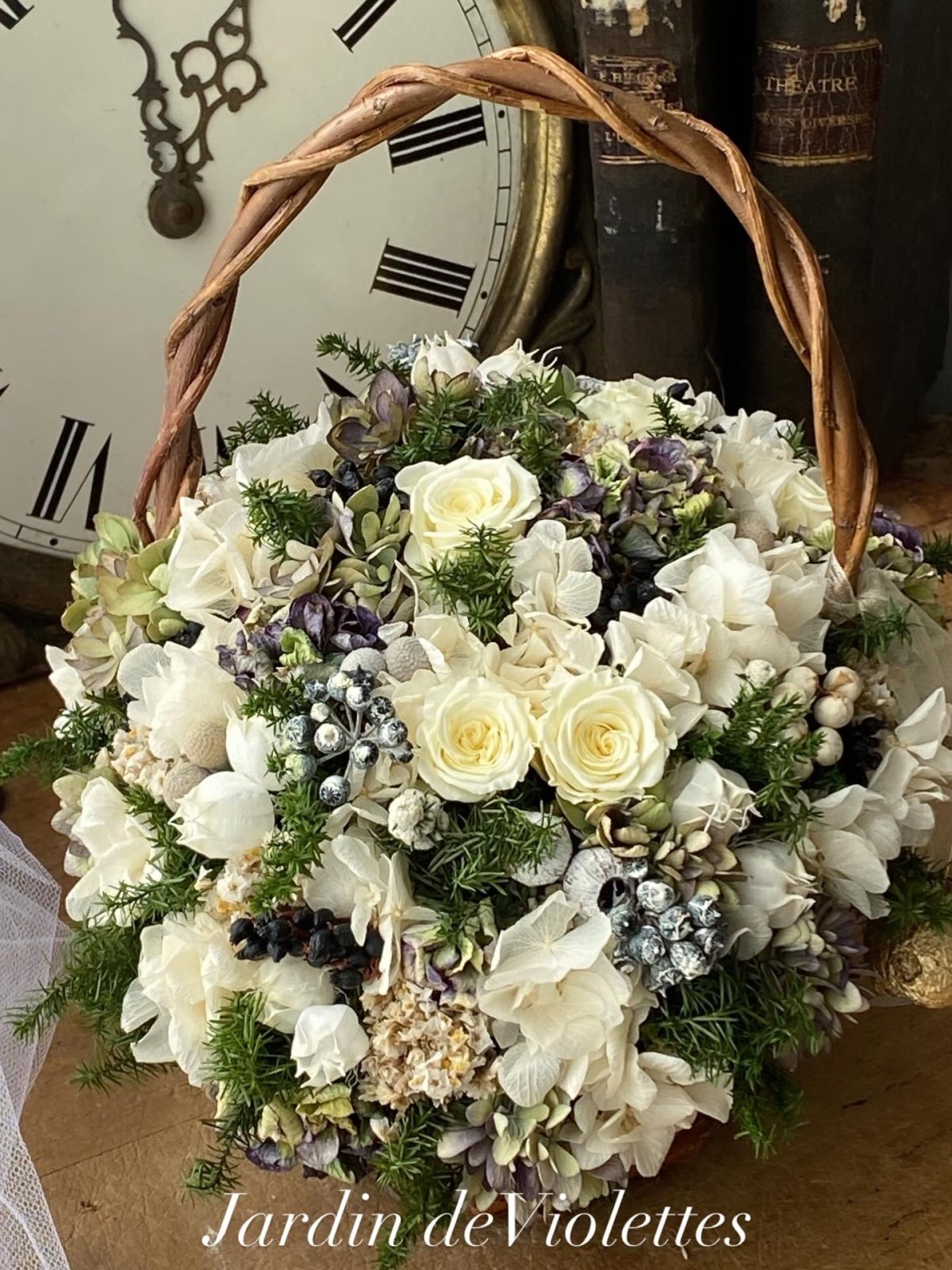 ジャルダン・スタイルの贅沢な花材使いとボリュームある
