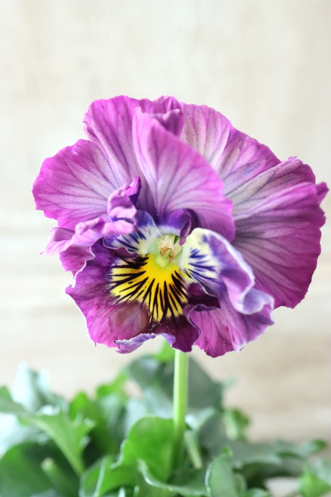 大輪で上品な花色と細かなクレープのある花弁が特徴のパンジーです!