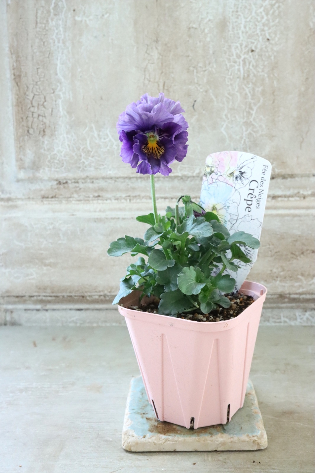 大輪で上品な花色と細かなクレープのある花弁が特徴のパンジーです!